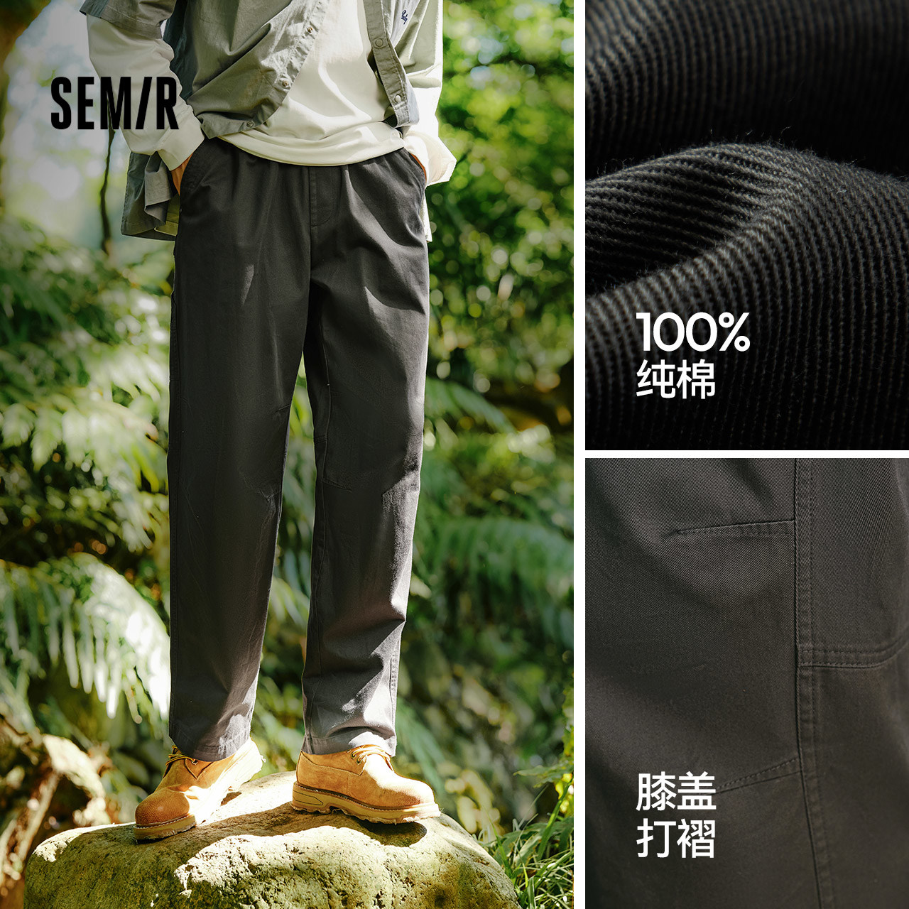 森马休闲裤男工装裤宽松直筒裤子秋季户外时尚纯色长裤纯棉松紧腰