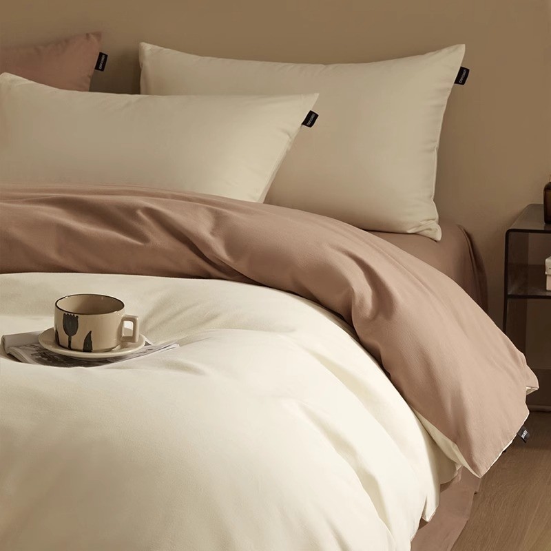 无印良品纯色秋冬牛奶绒四件套珊瑚绒床上绒三件套冬季加绒法兰绒