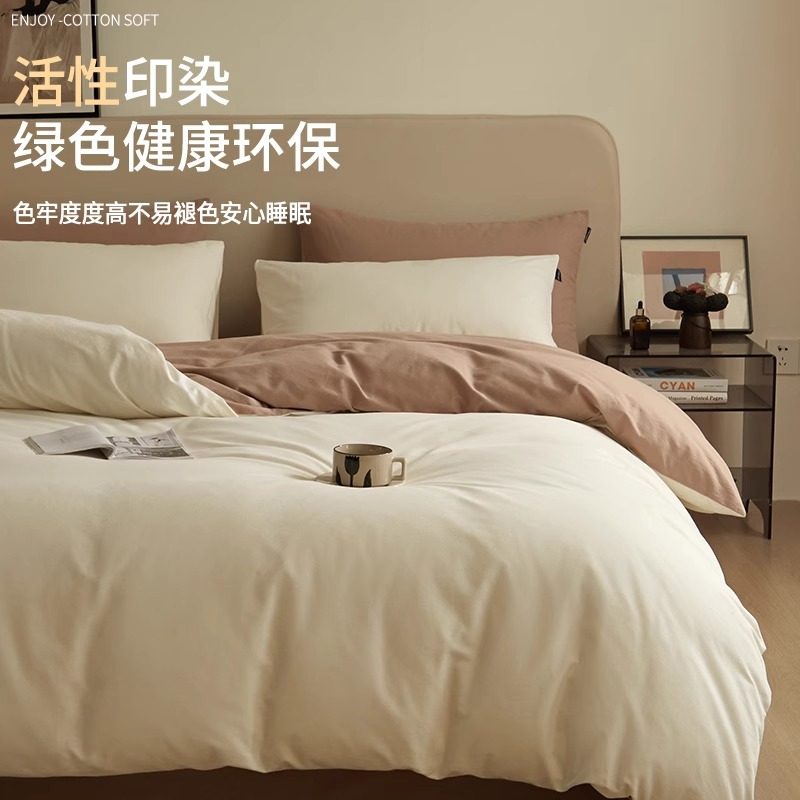 A类水洗棉双层纱四件套被罩非全棉纯棉床单人学生宿舍被套三件套