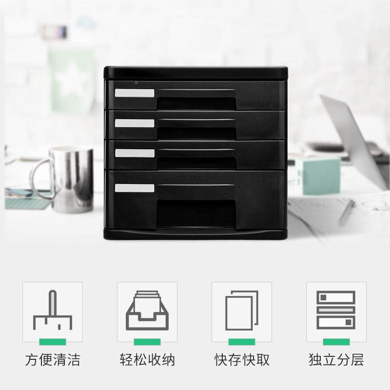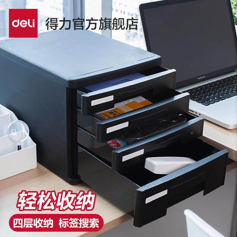 得力桌面文件柜抽屉式资料分整理箱纳盒收纳柜塑料收纳盒柜子四层