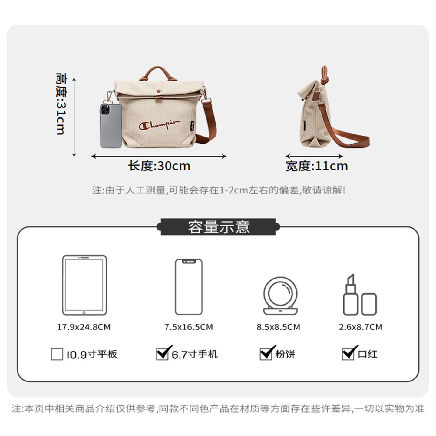 champion冠军26春季新款折折包手提斜挎包女士通勤旅游日常帆布包