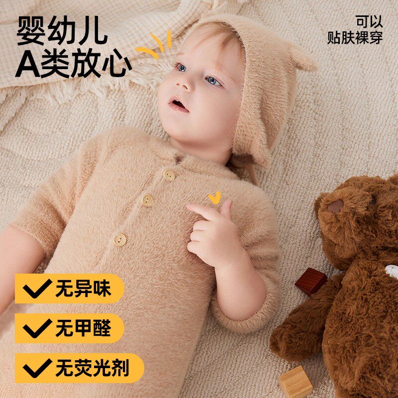 宝宝毛茸茸连体睡衣超萌儿童秋装毛绒小熊衣服婴儿搞笑家居服秋冬