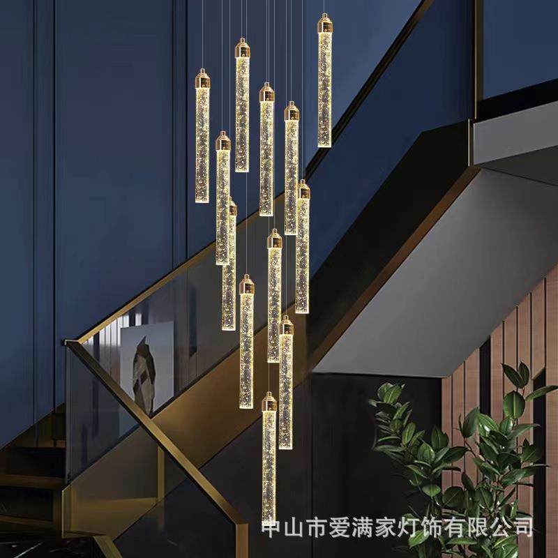 复式楼客厅水晶吊灯简约现代loft轻奢智能公寓个性别墅楼梯吊灯具