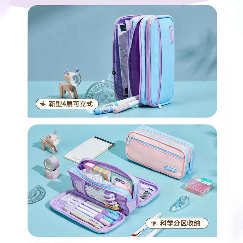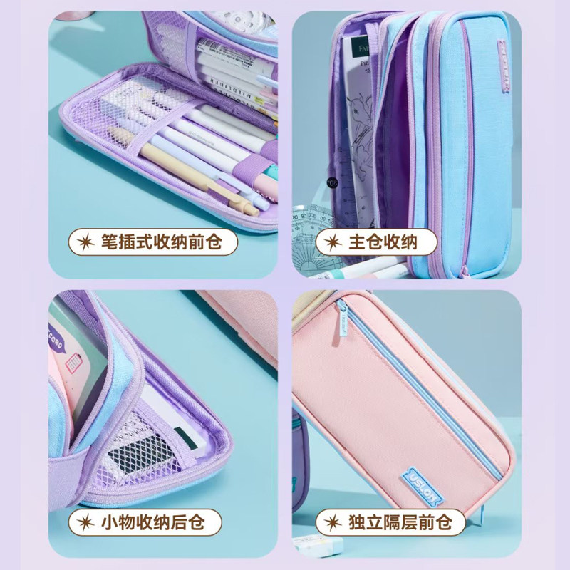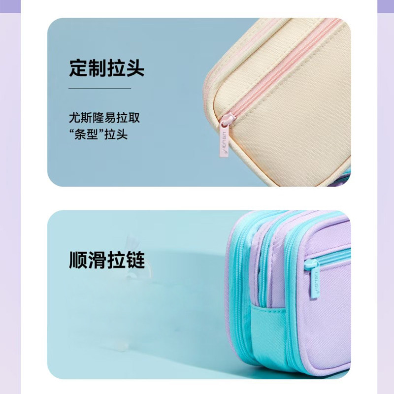 USLON尤斯隆笔袋507魔法锦囊 超大空间四层分区分类收纳笔袋独立拉链骨条定型ins风多巴胺马卡龙撞色铅笔盒
