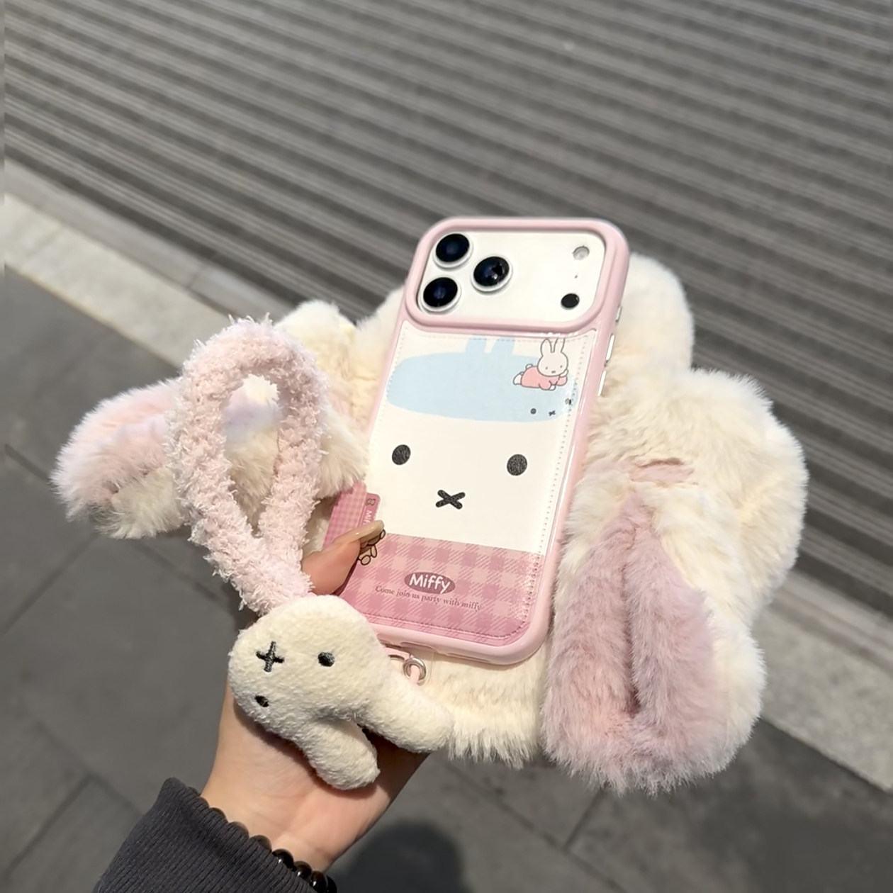 可爱鼓包皮纹米菲兔表情适用于苹果16/17promax少女心iPhone15pro手机壳女款14全包防摔13/12/11高颜值保护套
