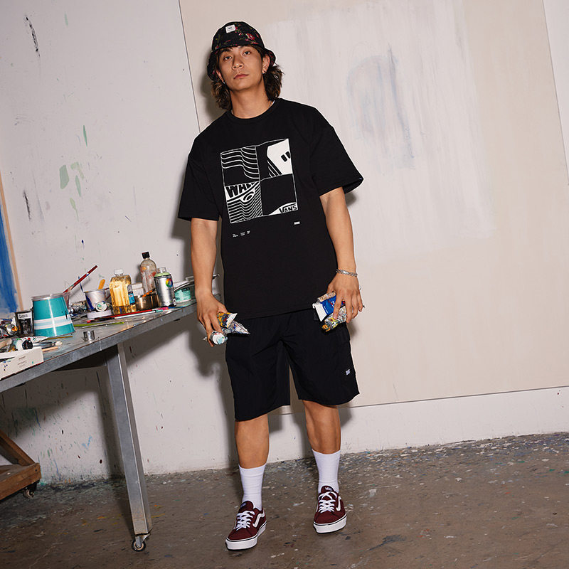Vans范斯官方 男子梭织短裤黑色格纹工装风