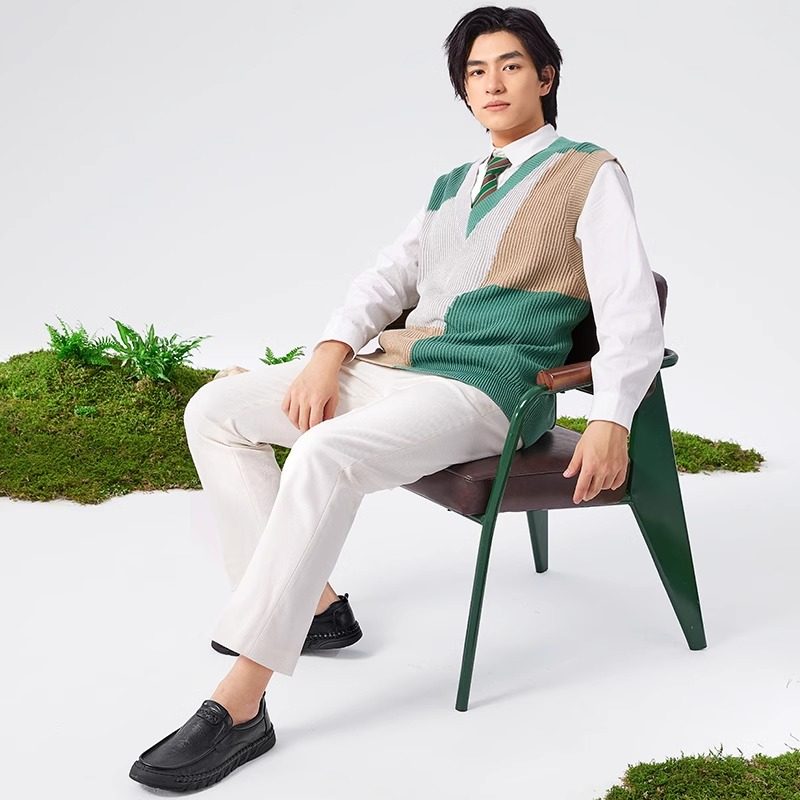 【小牛皮】青润chioryn袋鼠鞋男黑色真皮增高厚底休闲通勤风皮鞋