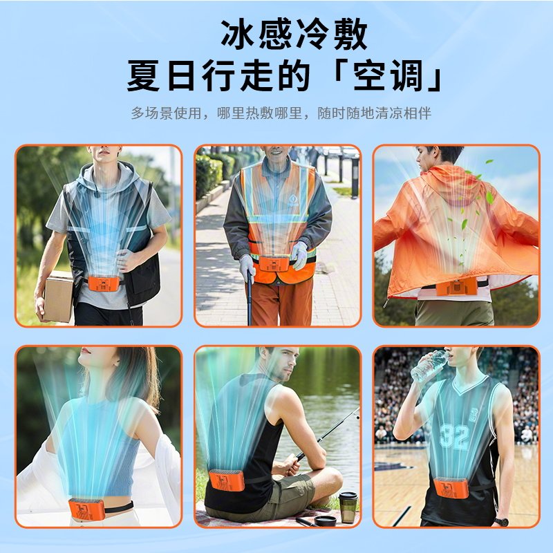半导体制冷敷挂腰随身制冷空调风扇超长续航挂腰式工地厨房钓鱼强力降温消暑户外挂脖风扇腰带穿戴超长续航