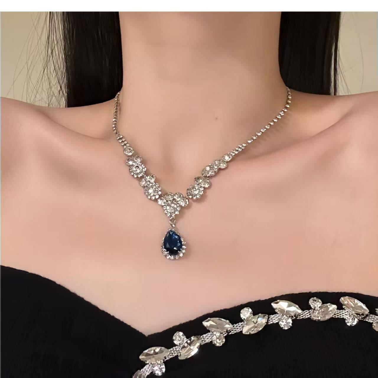 晚宴名流轻奢水滴吊坠项链小众设计感高级气质耳钉晚礼服套装锁骨