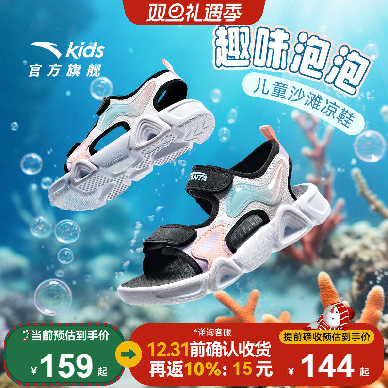 安踏儿童小童女童露趾运动凉鞋防滑宝宝凉鞋女宝沙滩鞋女孩25夏季
