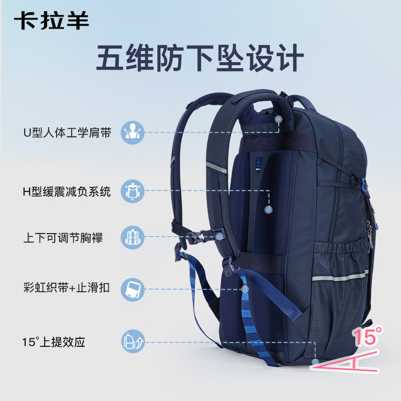 【新款】卡拉羊中学生书包40L超大容量电脑包轻便减负防下坠户外运动男生双肩包超轻女生背包登山旅游包