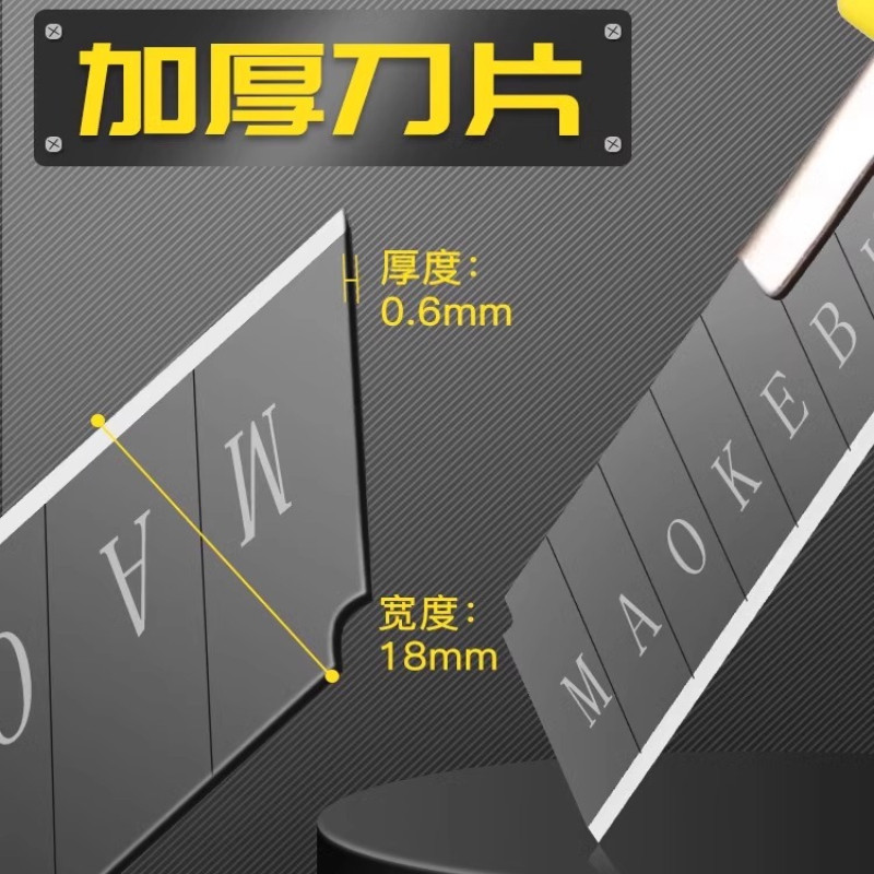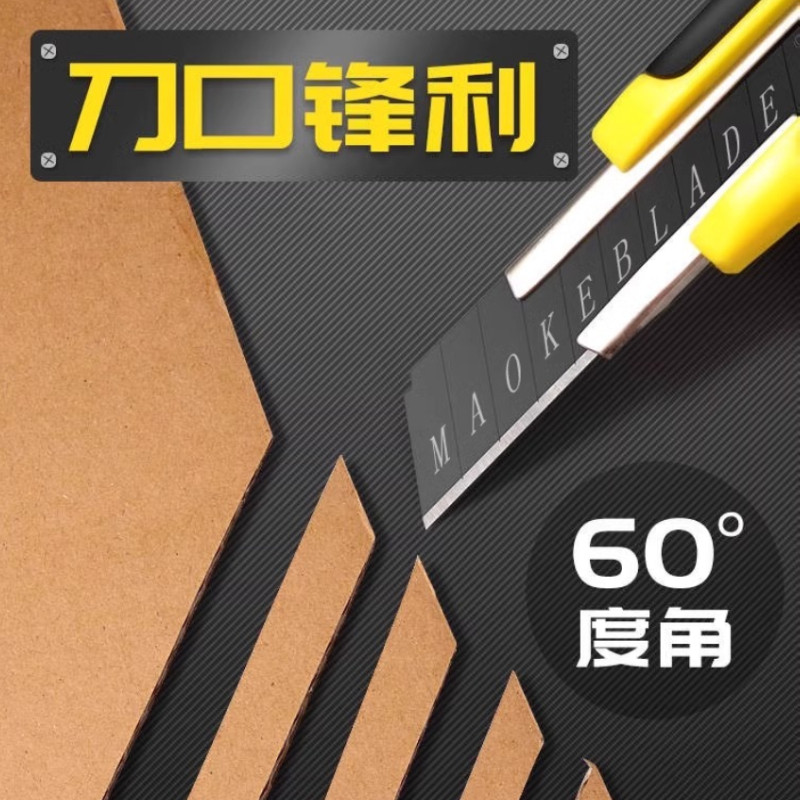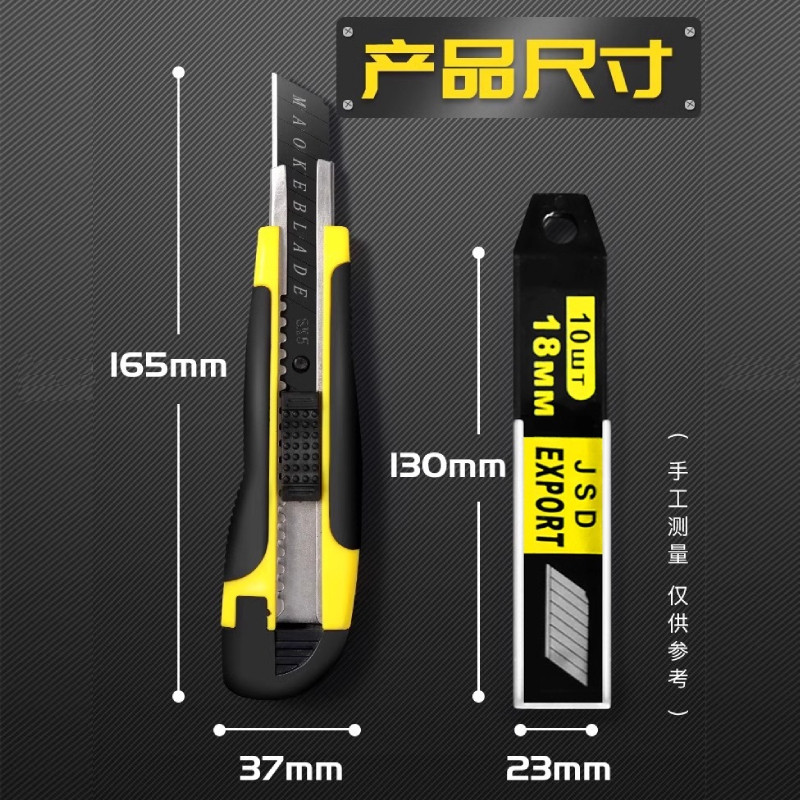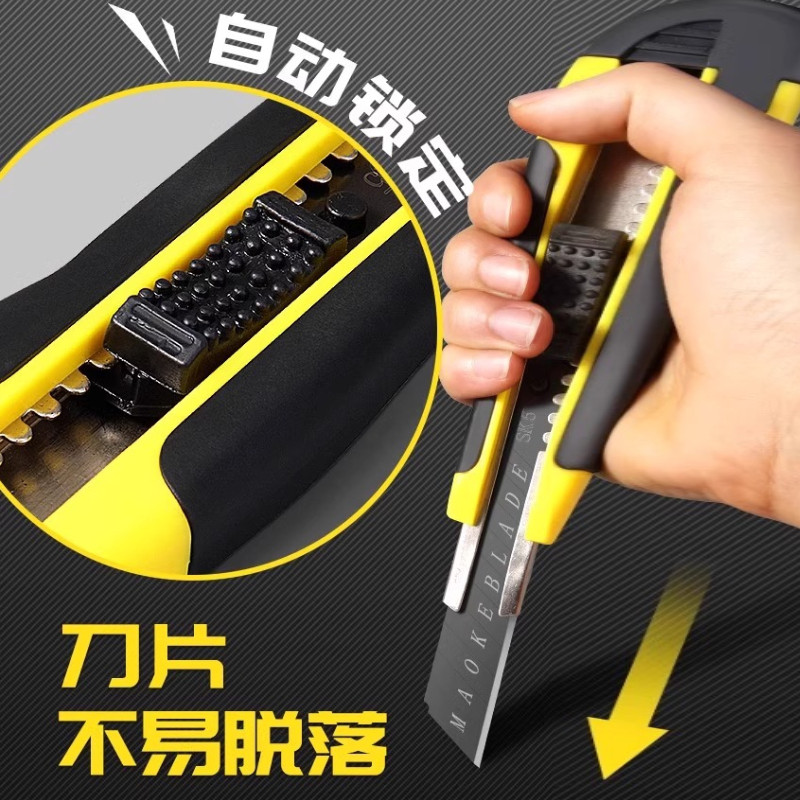 包胶美工刀黑刃刀片大号拆快递开箱神器裁纸用壁纸刀加厚高碳钢多功能拆切工具工业推锁设计不易脱落锋利刀刃