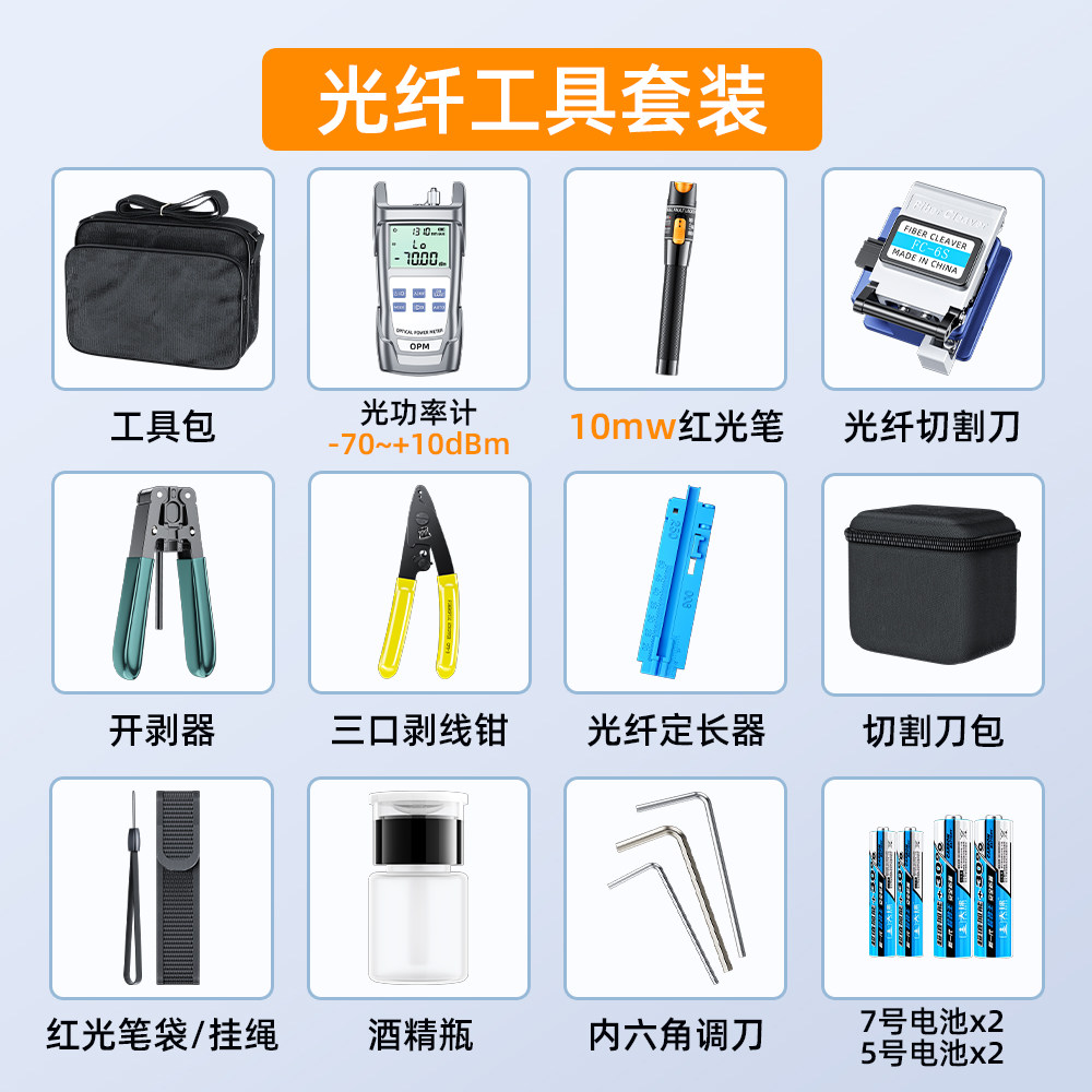 赛纤光纤冷接工具套装熔接机工具箱光纤装维修工具包光纤切割刀红光笔光功率计切割刀三口米勒钳开剥器皮线