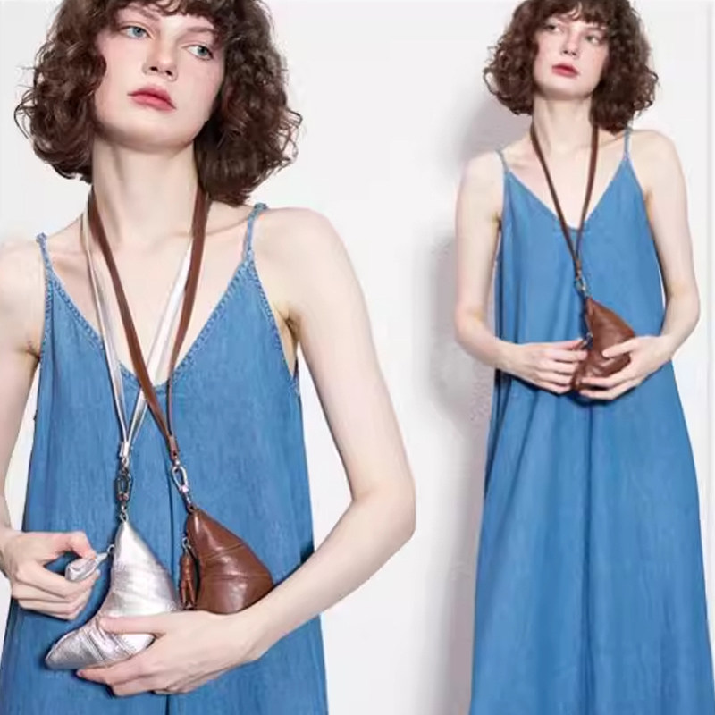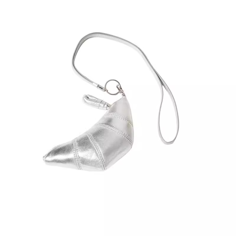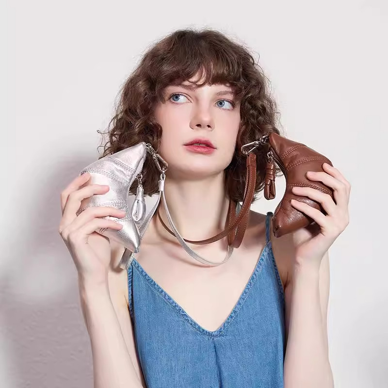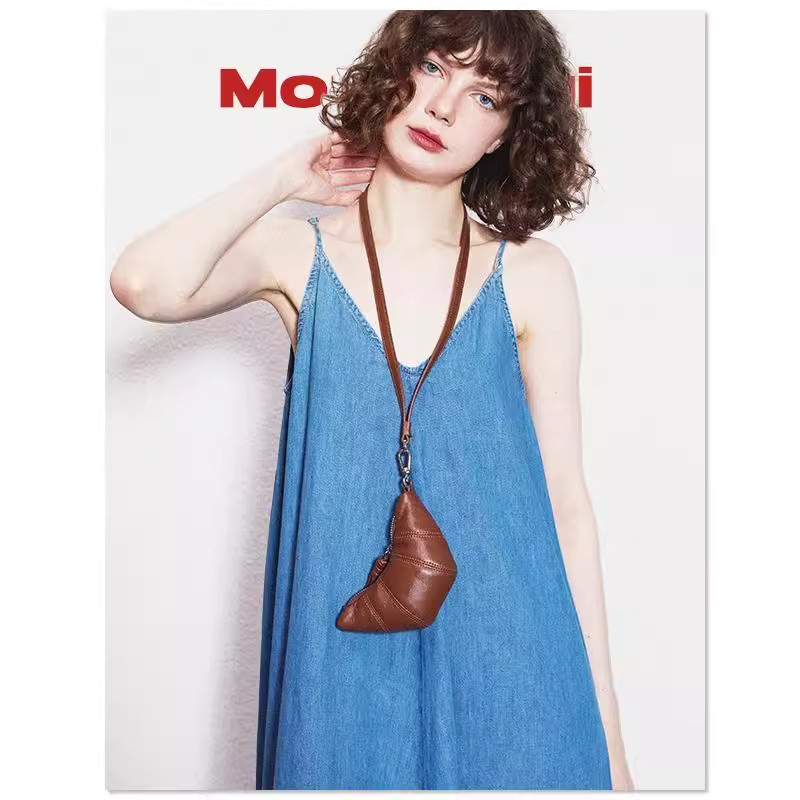 复古真软皮设计羊皮质感迷你牛角包新款精致挂绳mini小众零钱包