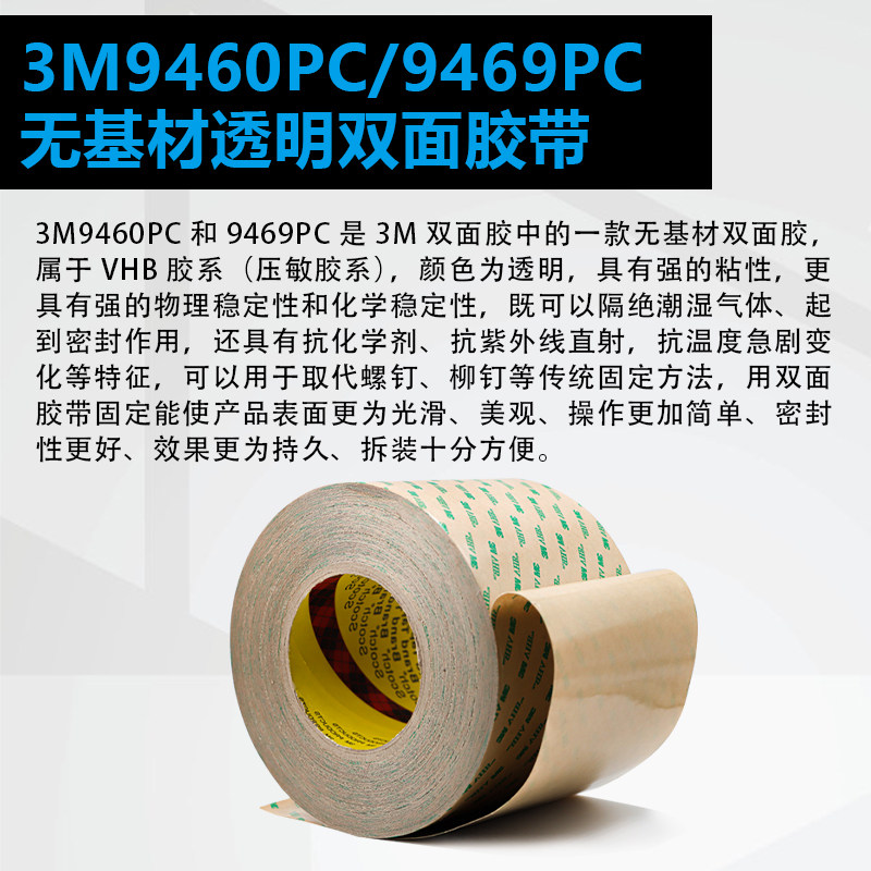3M9460PC-9469PC双面胶耐高温防水防潮透明高粘现货+模切加工定制