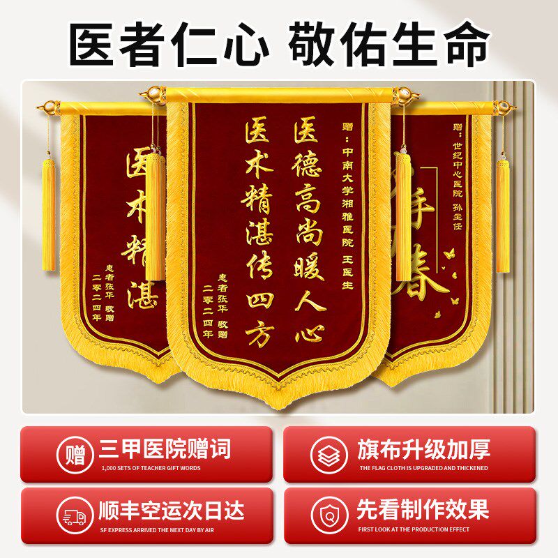 高档锦旗定b制定做感谢医生护士赠送幼儿园老师月嫂月子中心医院