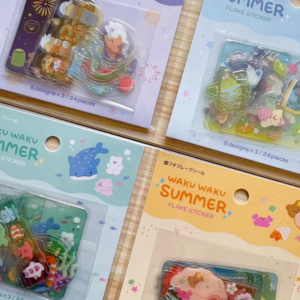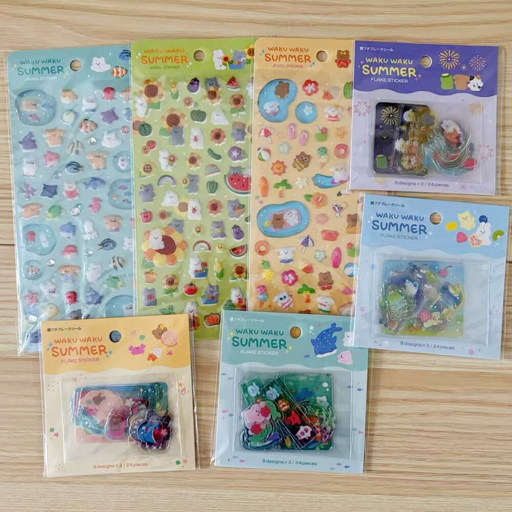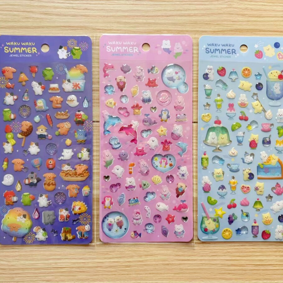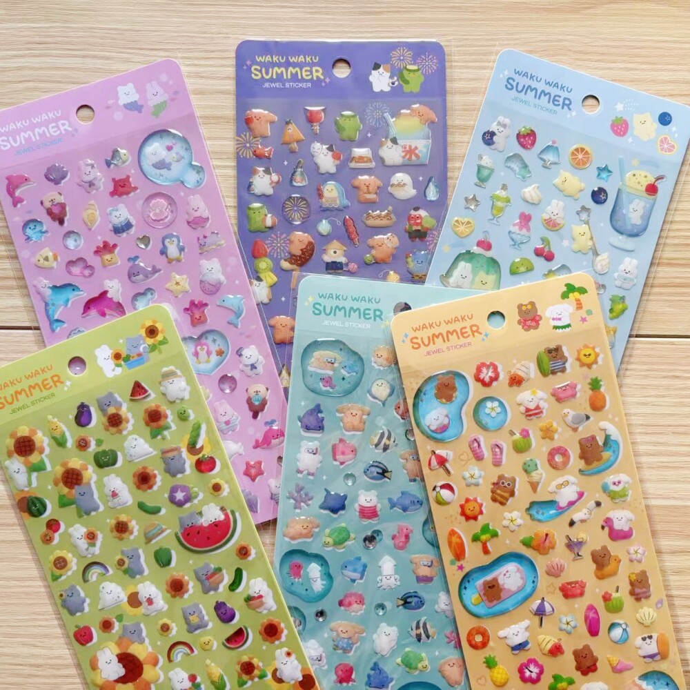 蘑菇屯 日本进口 Gaia夏季限定水晶贴纸 可爱动物卡通夏天时光