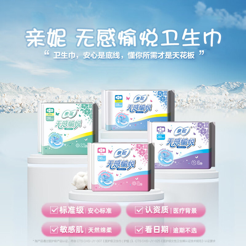 亲妮卫生巾姨妈巾280mm日用夜用套装弹力极薄加长超薄护翼防漏
