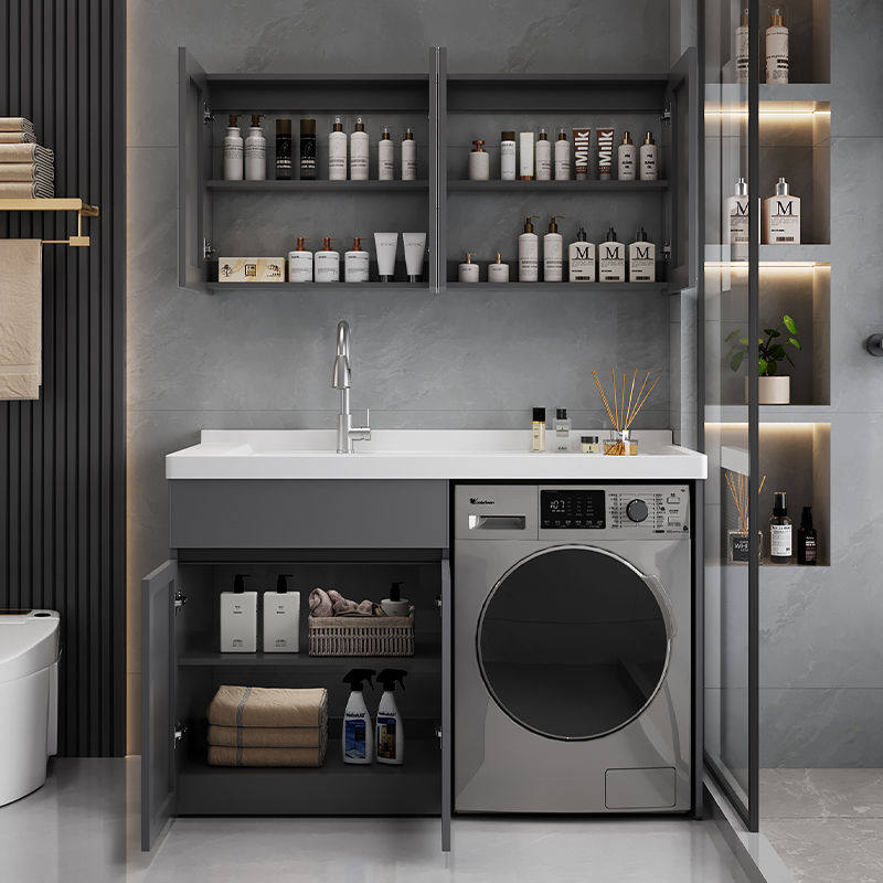 2024新品定制太空铝洗衣柜阳台一体柜卫生间洗漱浴室柜台盆带搓板