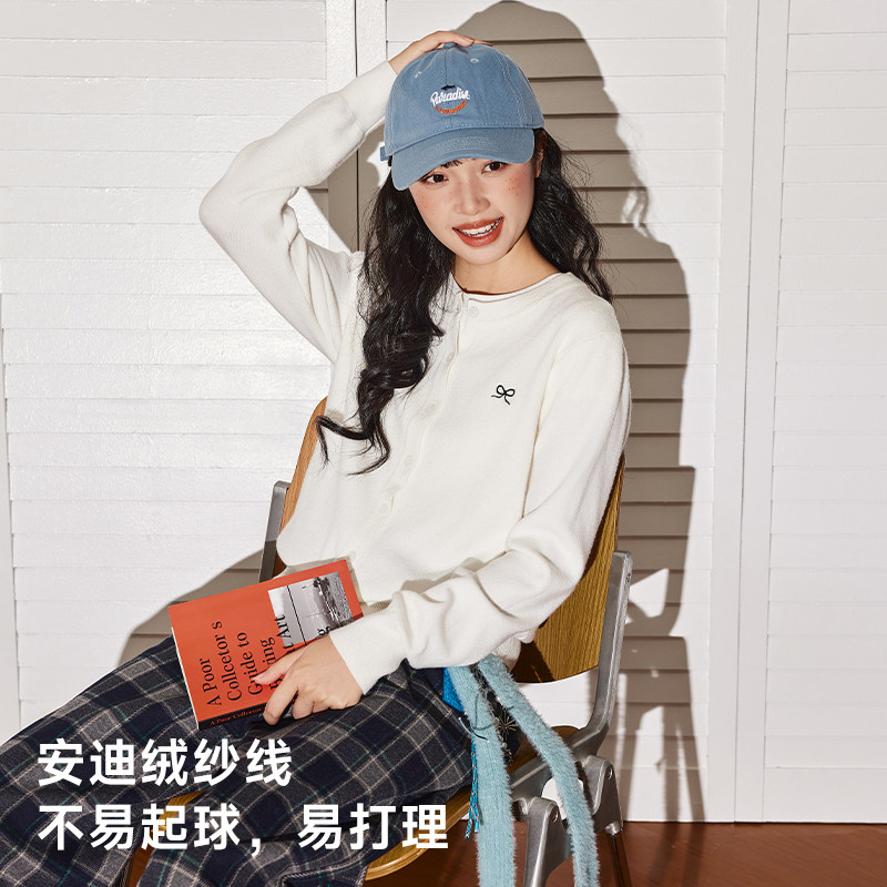 唐狮官方白色开衫毛衣外套女2026新款春秋款外穿针织开衫上衣VB