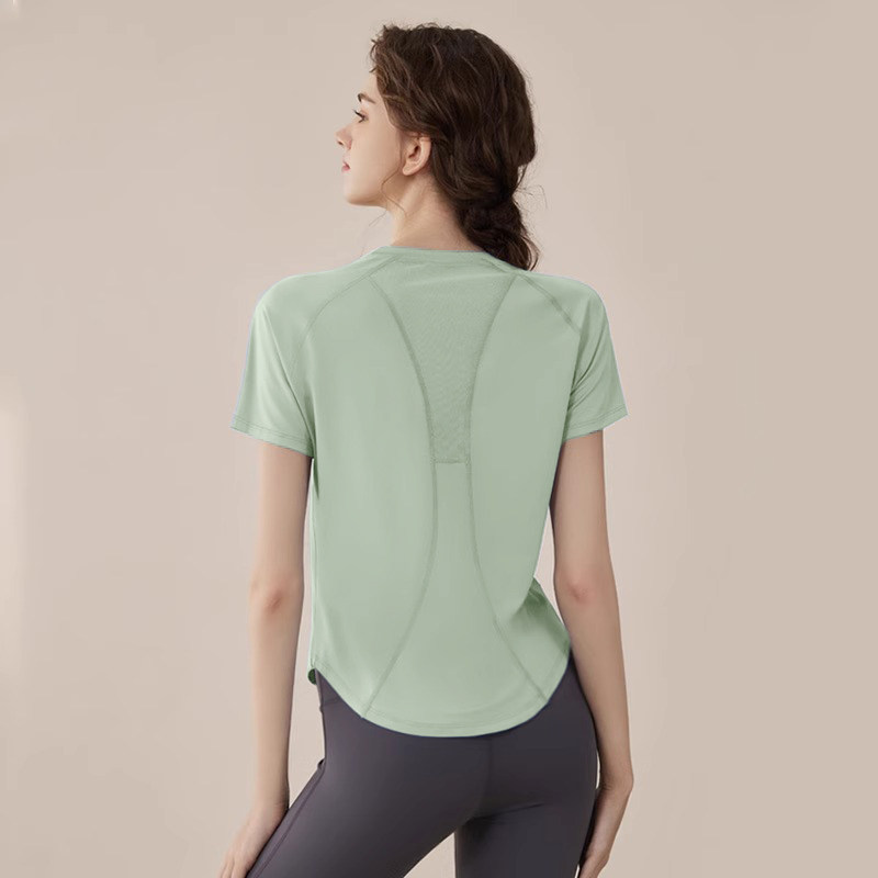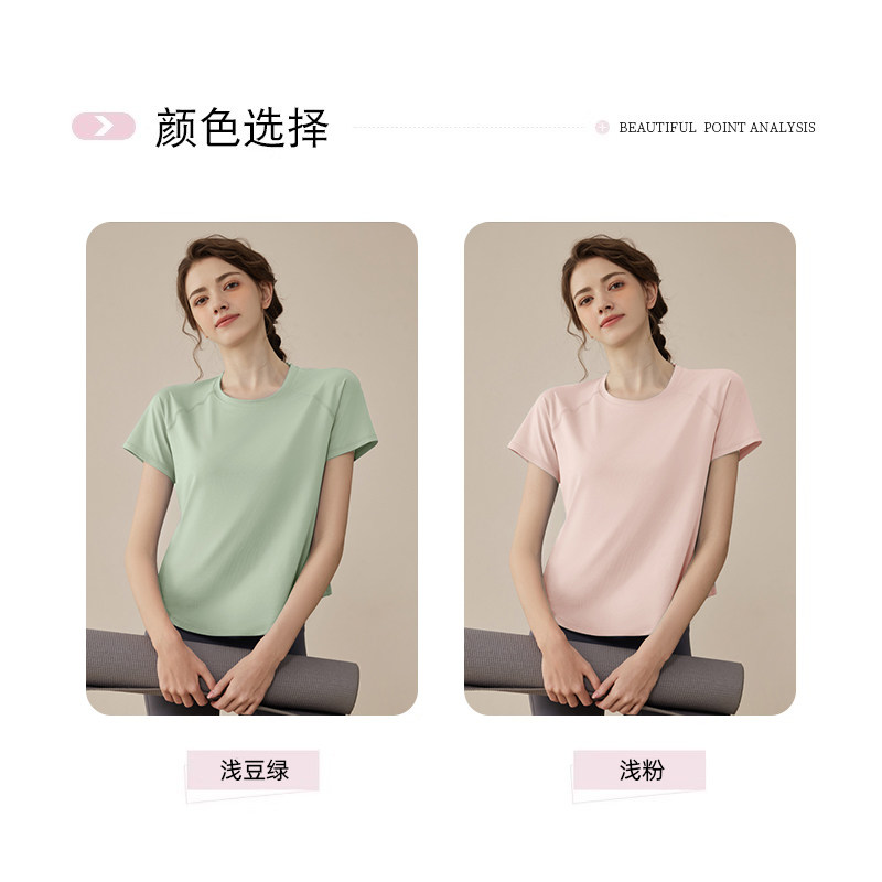 新款跑步瑜伽服套装女短袖速干透气显瘦运动上衣健身服普拉提训练