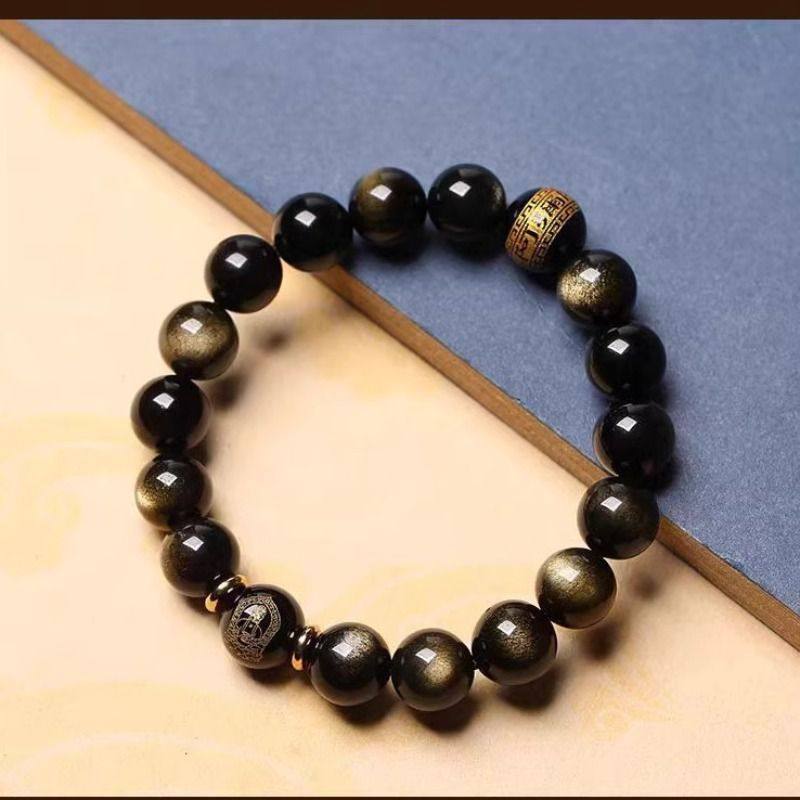 VZZS天然金曜石本命佛猫眼十二生肖手串正品黑曜石佛珠手链佩戴