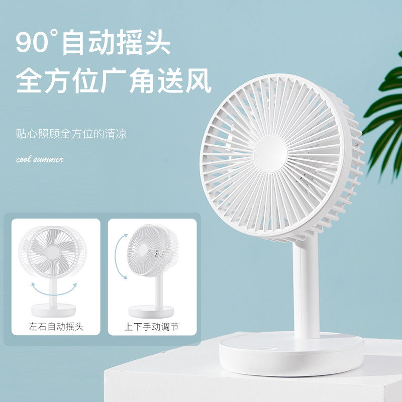 韩国HYUNDAI小风扇小型USB便携式学生宿舍床上用迷你台式桌面电风扇可充电型轻音办公室桌上摇头大风强力电扇