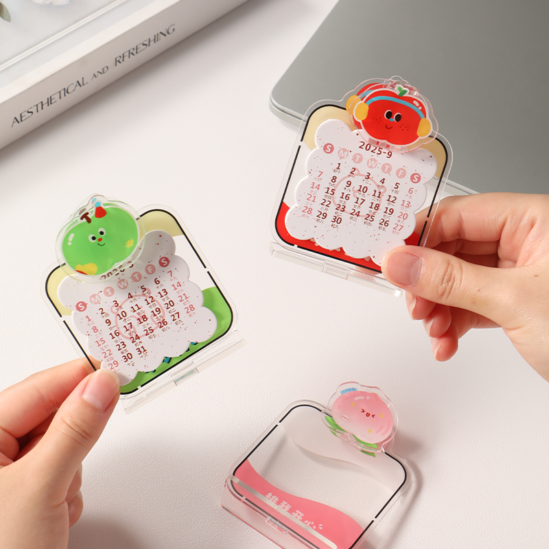 2026年新款亚克力迷你立牌日历学生桌面员工办公室便签夹卡片月历摆件学习工作自律打卡神器可爱卡通记事本