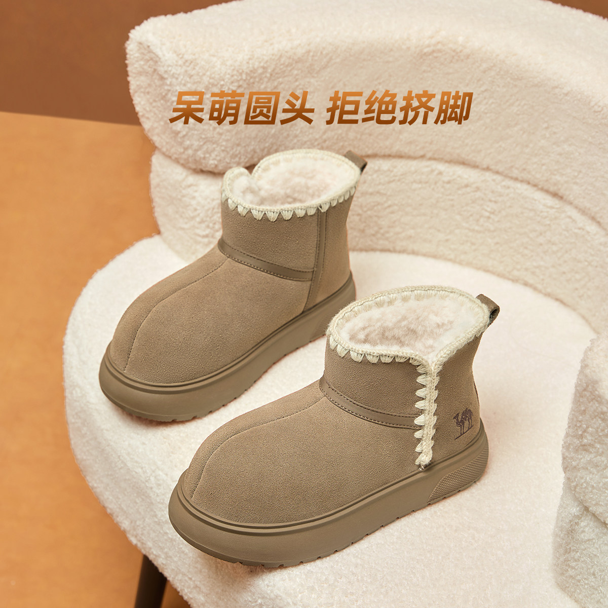 骆驼女鞋2025冬季东北加绒加厚保暖棉鞋厚底面包鞋时尚雪地靴