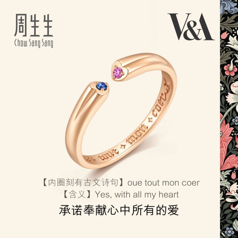 周生生18K玫瑰金V&A系列情诗宝石戒指女93181R