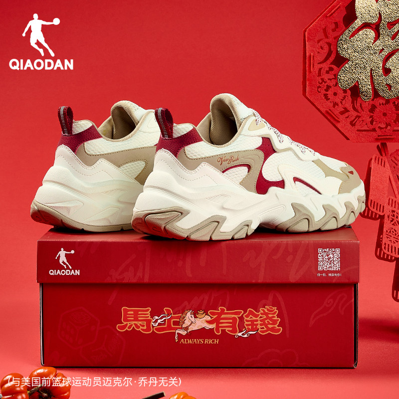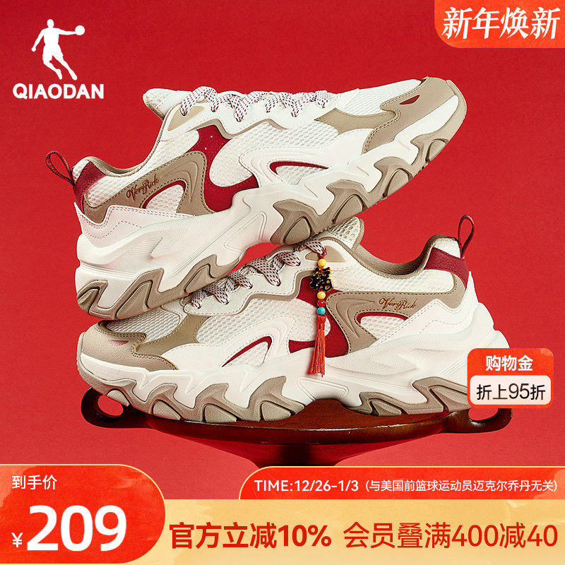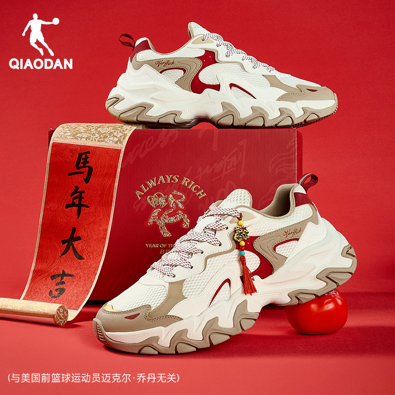 乔丹千层鞋新年红色老爹鞋男运动鞋2026春季厚底增高休闲鞋男鞋子