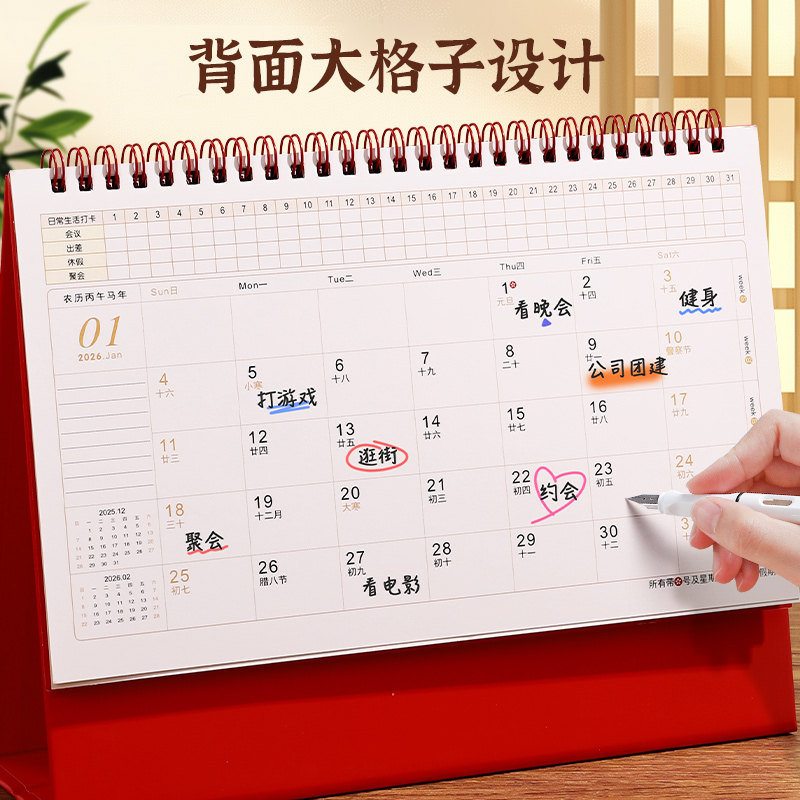台历2026年新款桌面大格子记事日历定做商务办公创意摆件每天一页计划本打卡简约工作2025马年月历订制logo