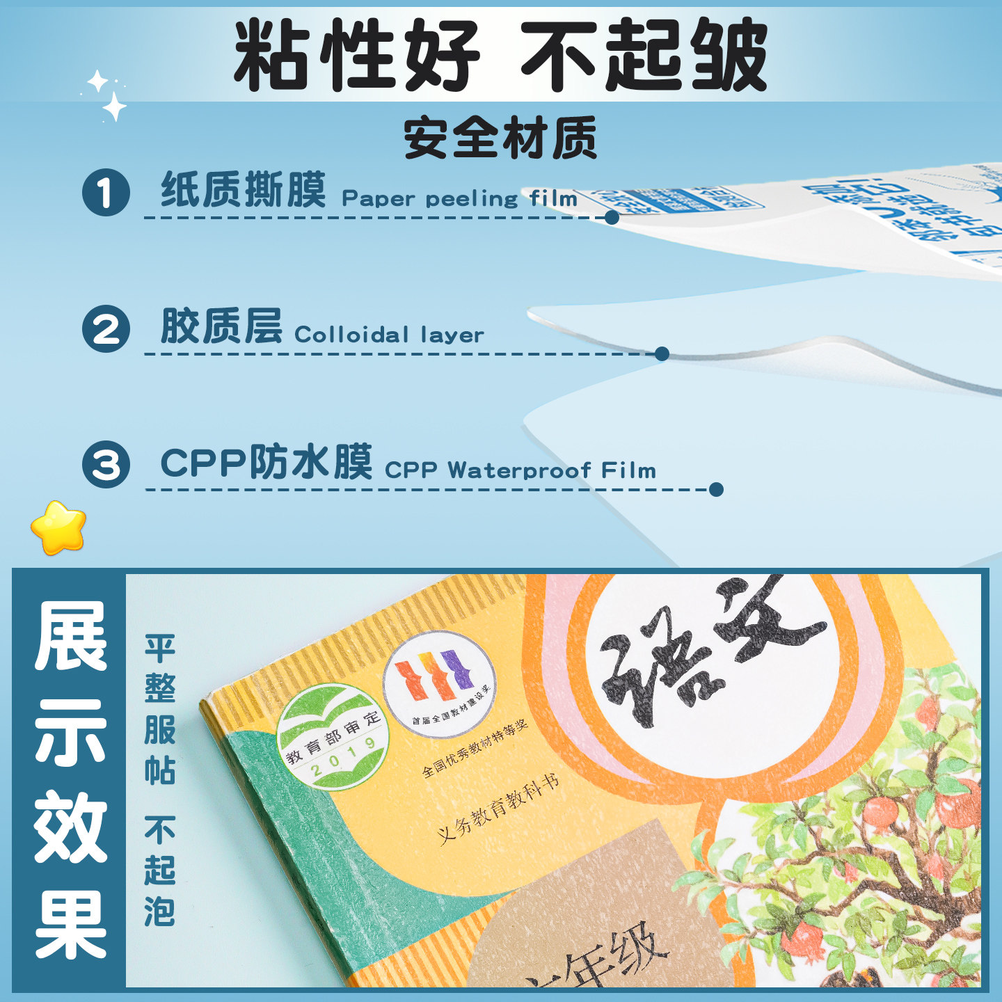 包书皮自粘透明磨砂书皮纸小学生专用一年级二三年上册中号16k课本2025新款书本封皮保护套书套书膜全套贴纸
