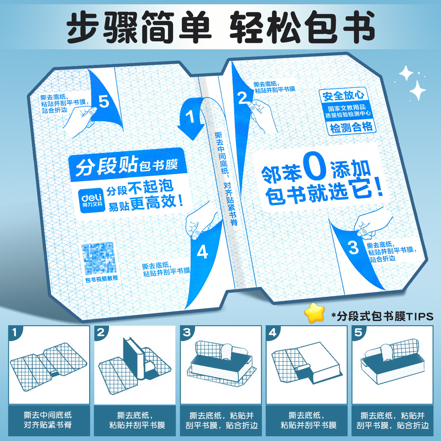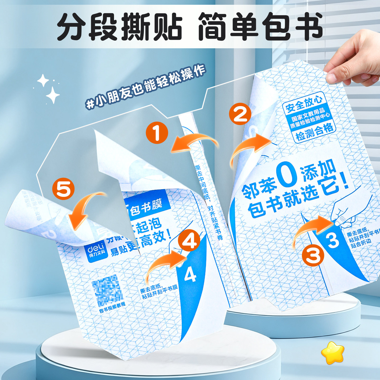 【2件5折】得力纽赛分段式包书皮书套包书膜带定位书皮纸自粘透明磨砂加厚16K小学生一年级防水防滑塑料课本
