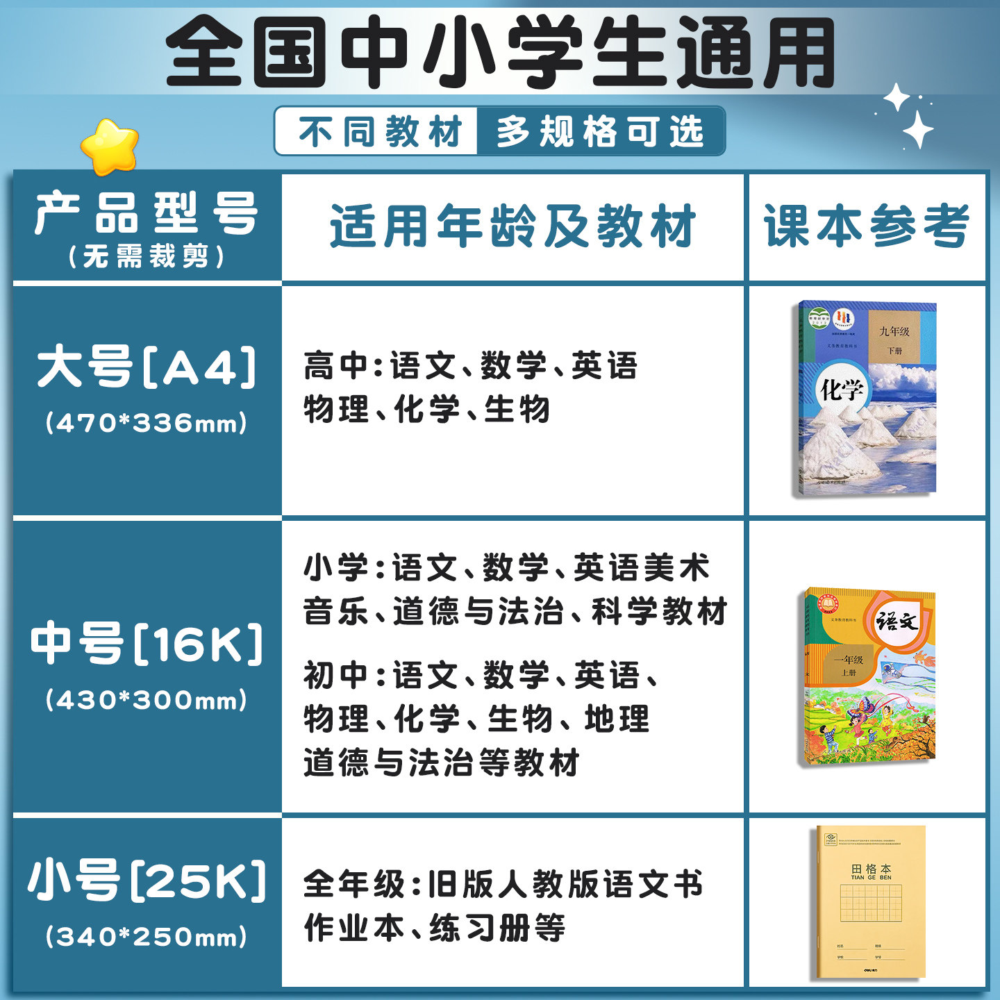 得力书皮贴纸自粘透明磨砂包书膜一年级下册包书皮书套小学生二三四年级课本A4书壳保护套16K包书纸2025新款
