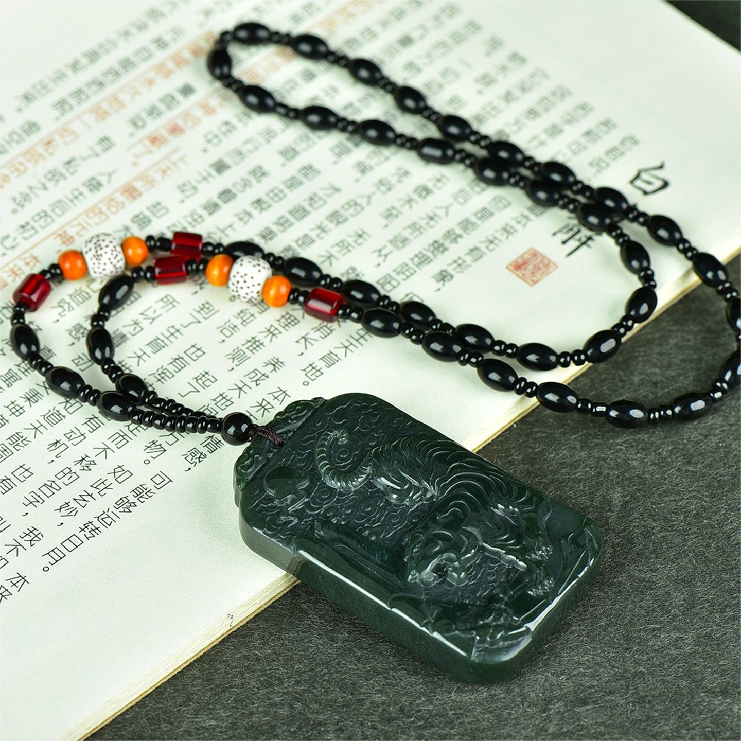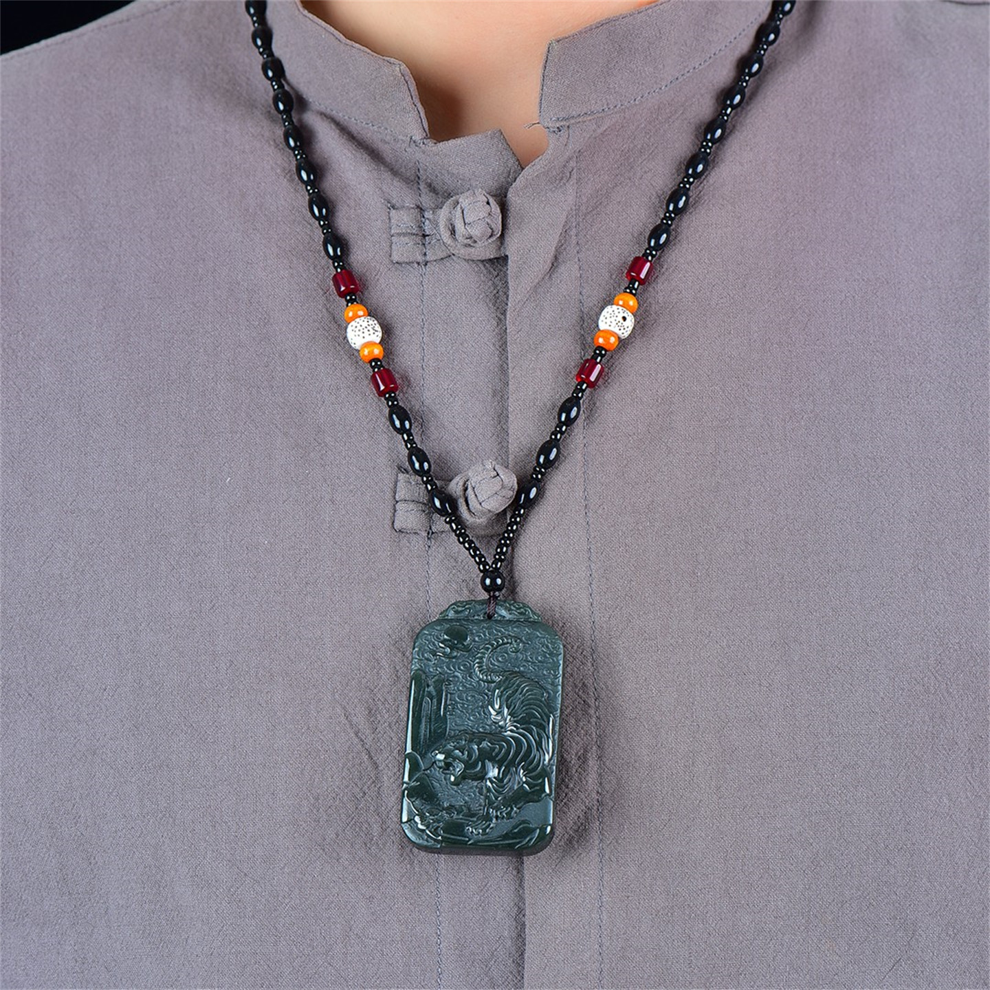 送证书天然新疆和田玉青玉挂件老虎下山虎玉石吊坠男款玉佩8734