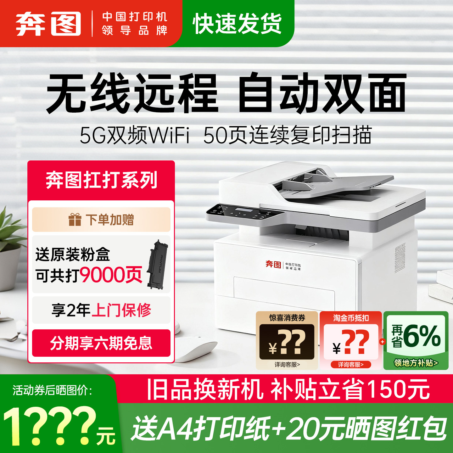 奔图旗舰店扛打BM4242ADW黑白激光打印机A4自动双面打印连续复印扫描一体机家用办公专用高速机BM4202DW BP