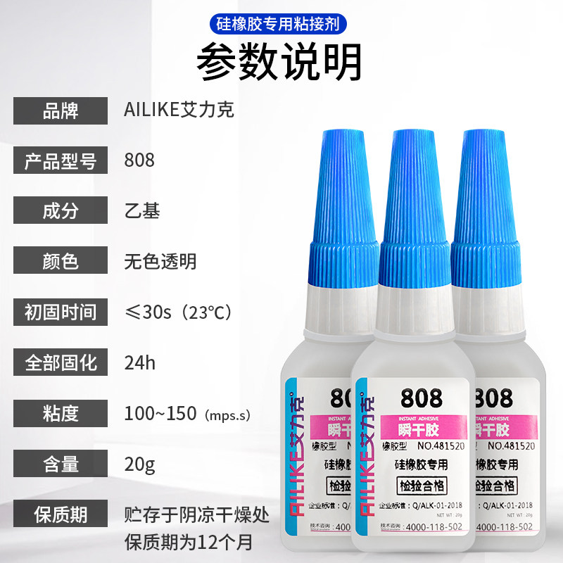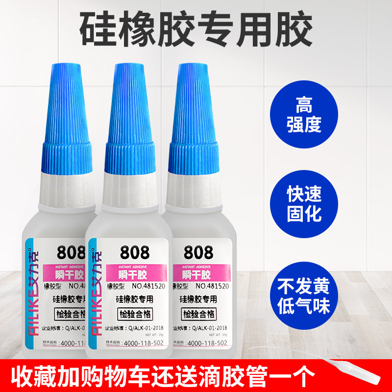 艾力克A-808瞬干胶强力粘接橡胶密封条硅橡胶 瞬间快干防松防水强力胶 硅胶材质专用胶粘剂