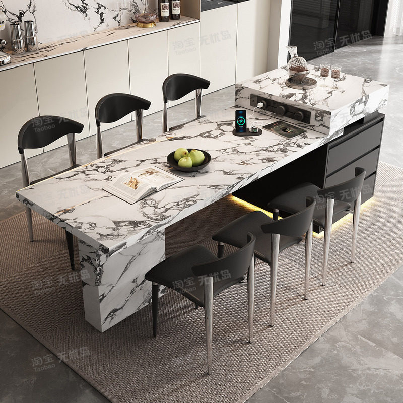 宝格复古风丽白岛台餐桌一体可伸缩岩板倒台可定制高端轻奢中导台