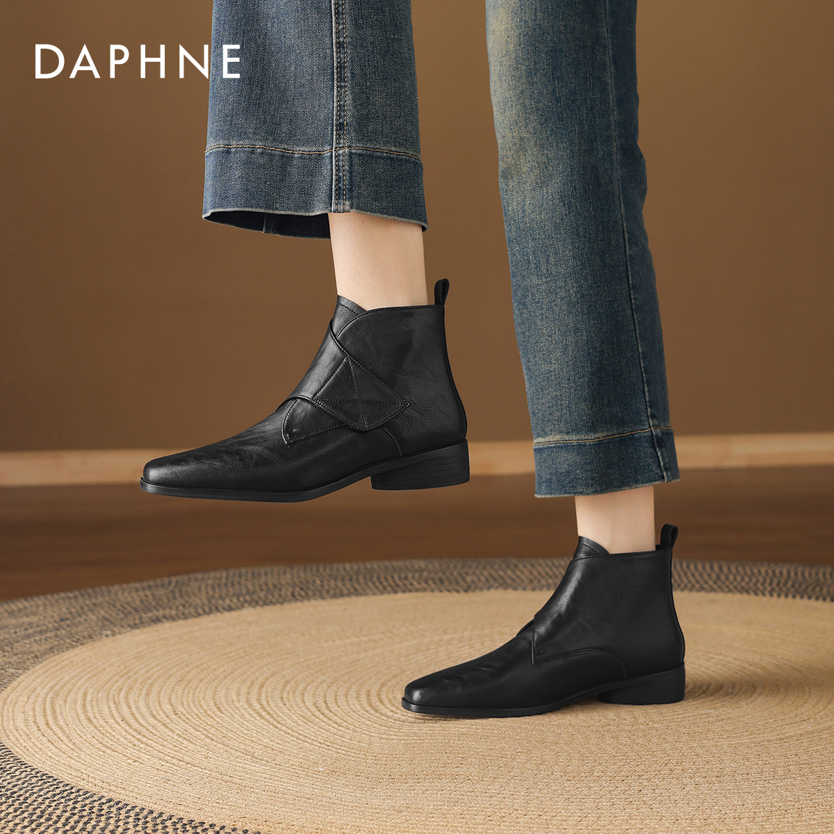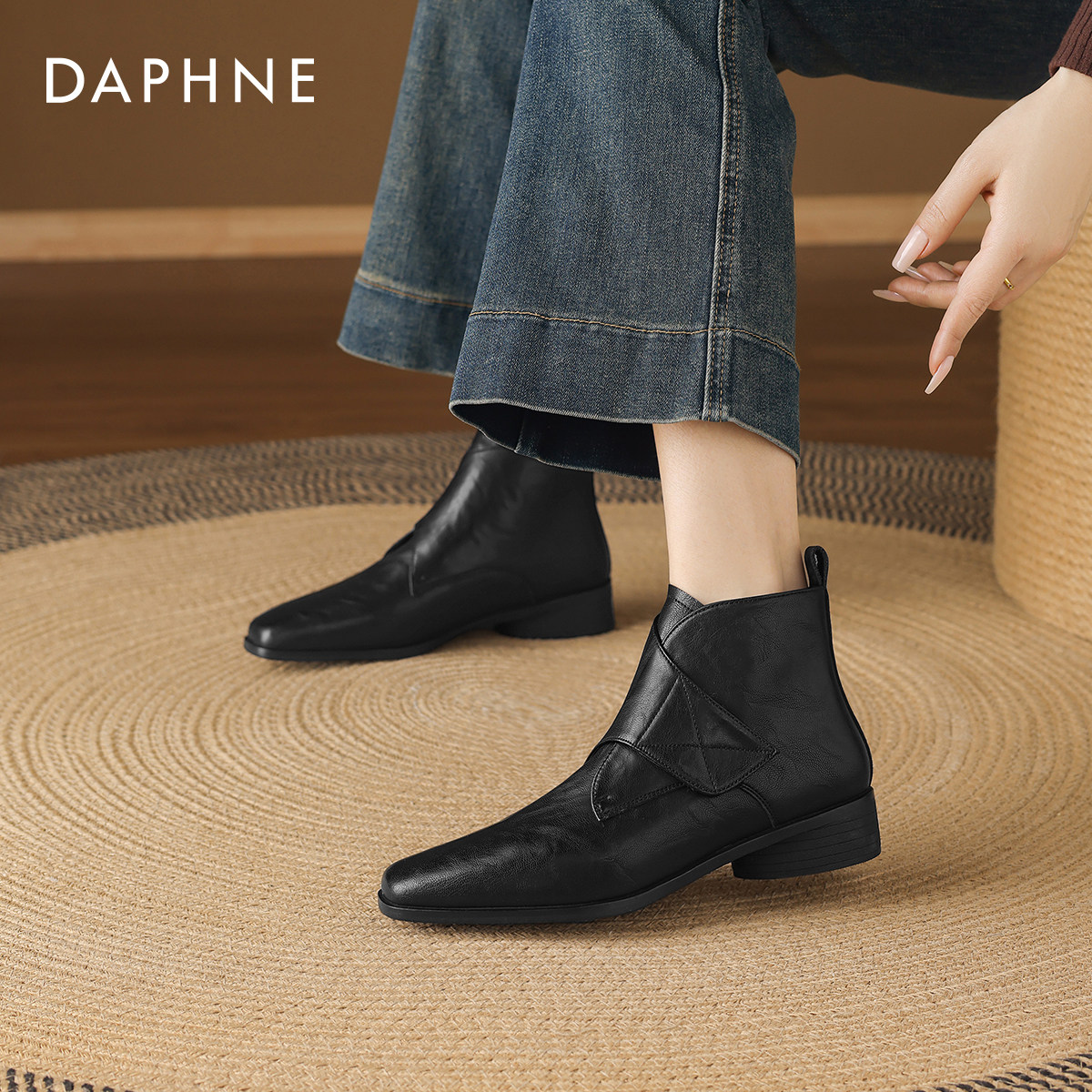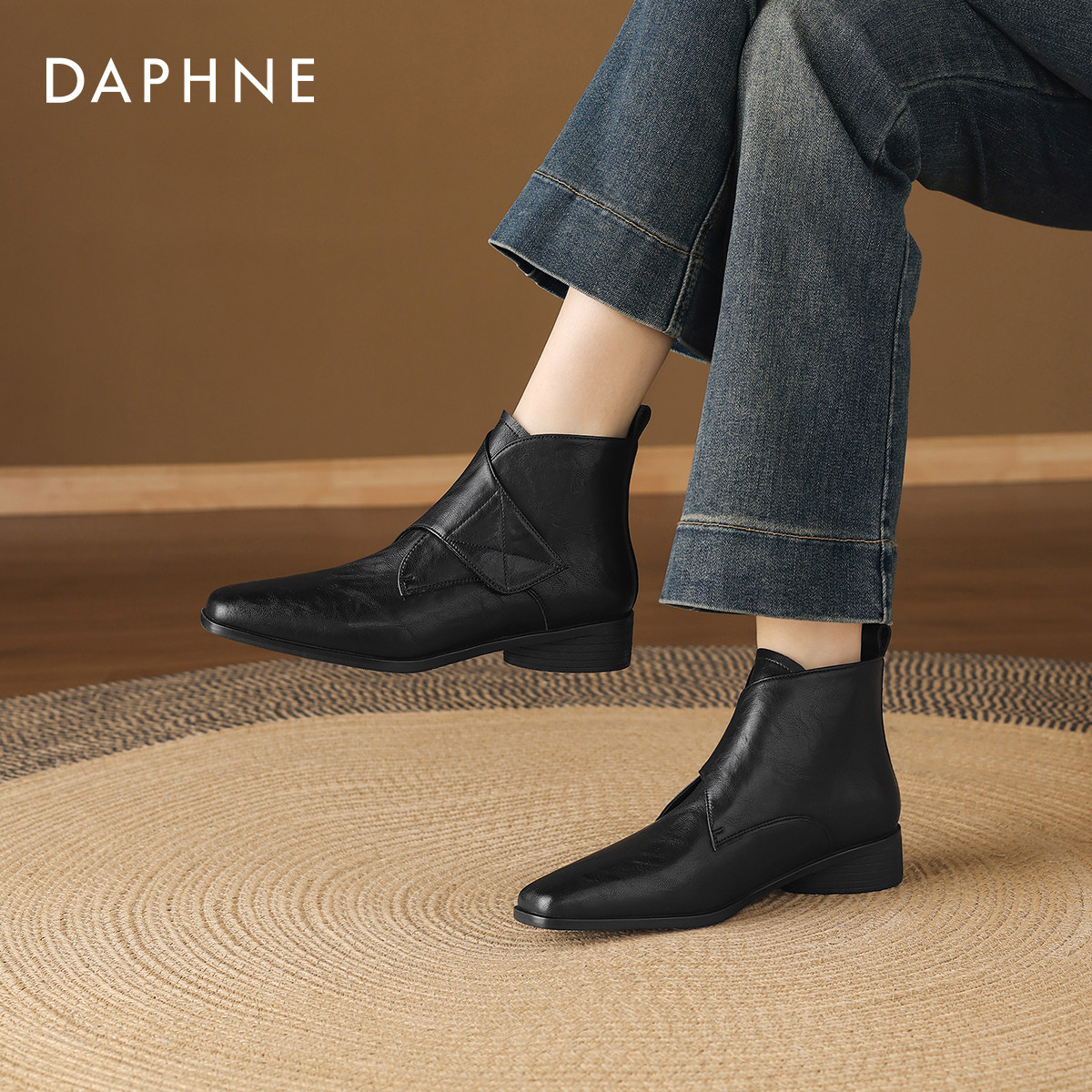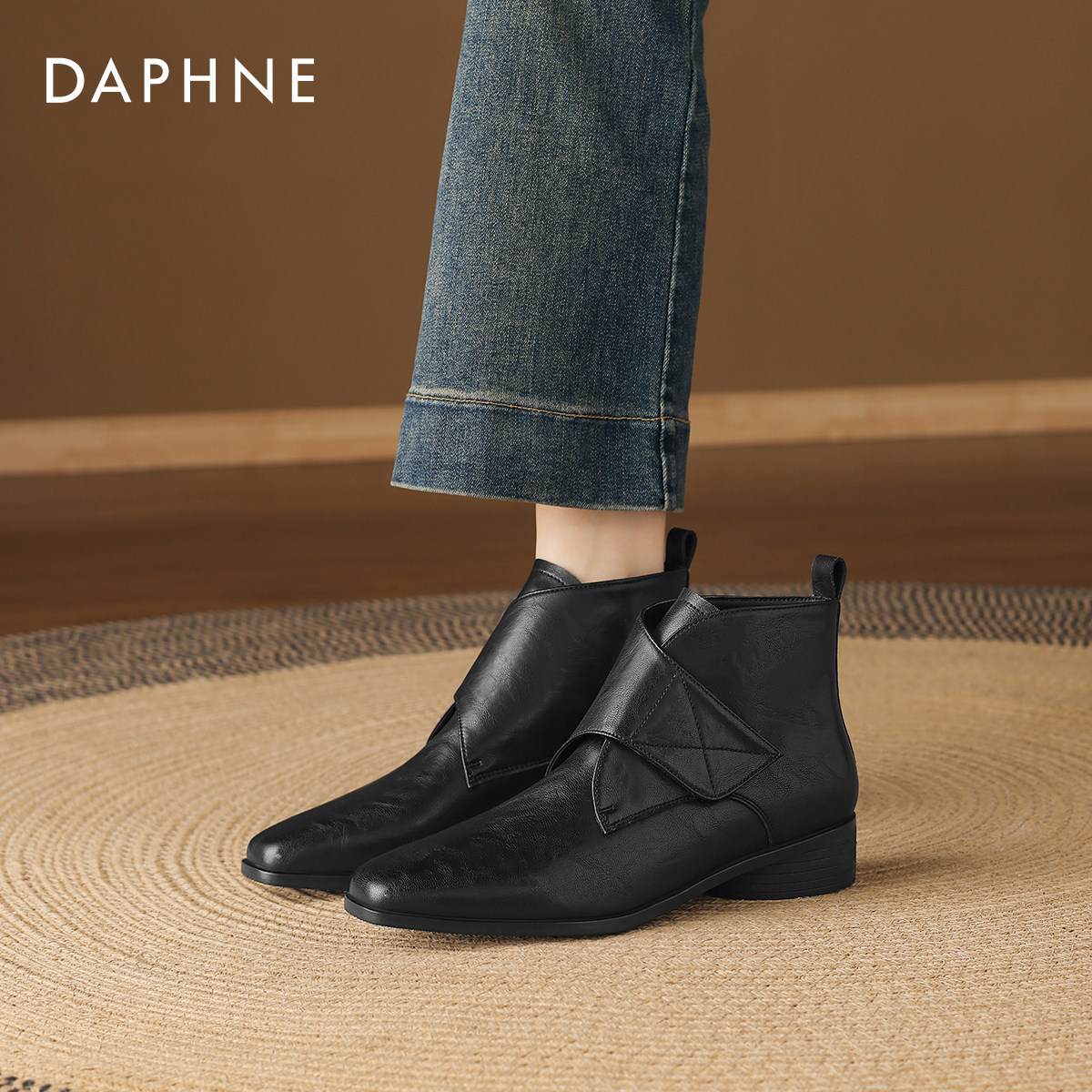 达芙妮小短靴女冬季2026新款马丁靴加绒妈妈女鞋方头皮鞋法式踝靴