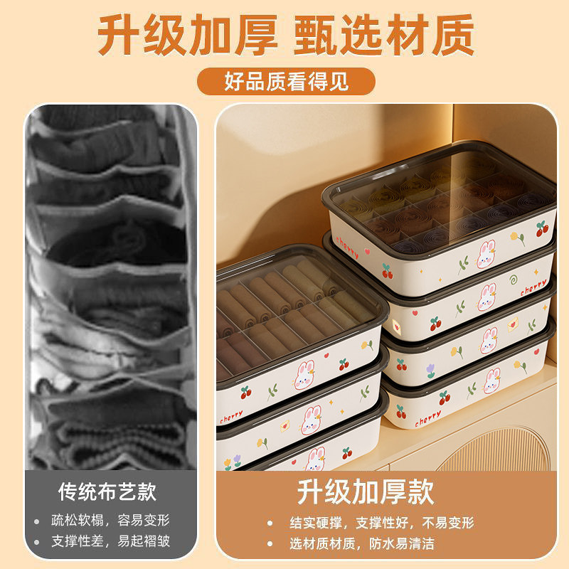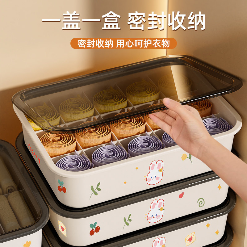 透明内裤袜子收纳盒带盖衣柜家用卧室多格翻盖衣物收纳箱宿舍家用