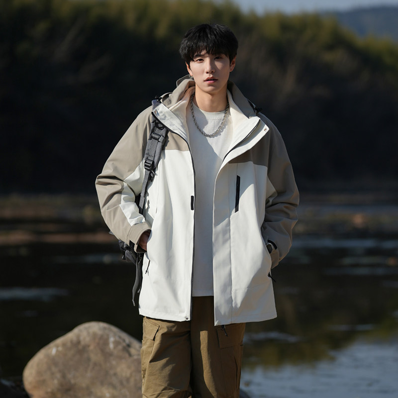 骆驼男装夹克春秋保暖三合一户外三防冲锋衣外套内胆防水徒步登山