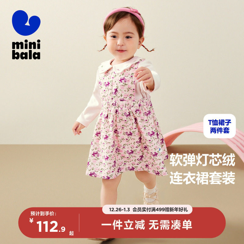 【商场同款】迷你巴拉连衣裙长袖灯芯绒T恤套装两件女童甜美可爱