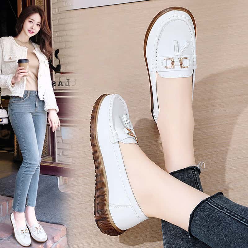 日泰头层牛皮女单鞋秋季厚底小皮鞋百搭通勤鞋妈妈软底真皮乐福鞋