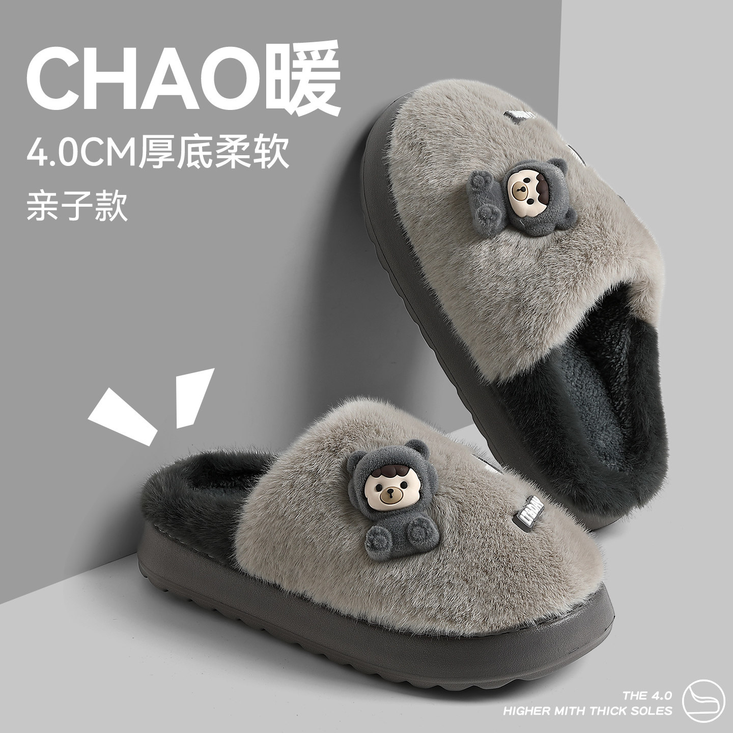 儿童男童棉拖鞋2025新款冬季防滑保暖毛绒亲子室内家居棉拖女孩