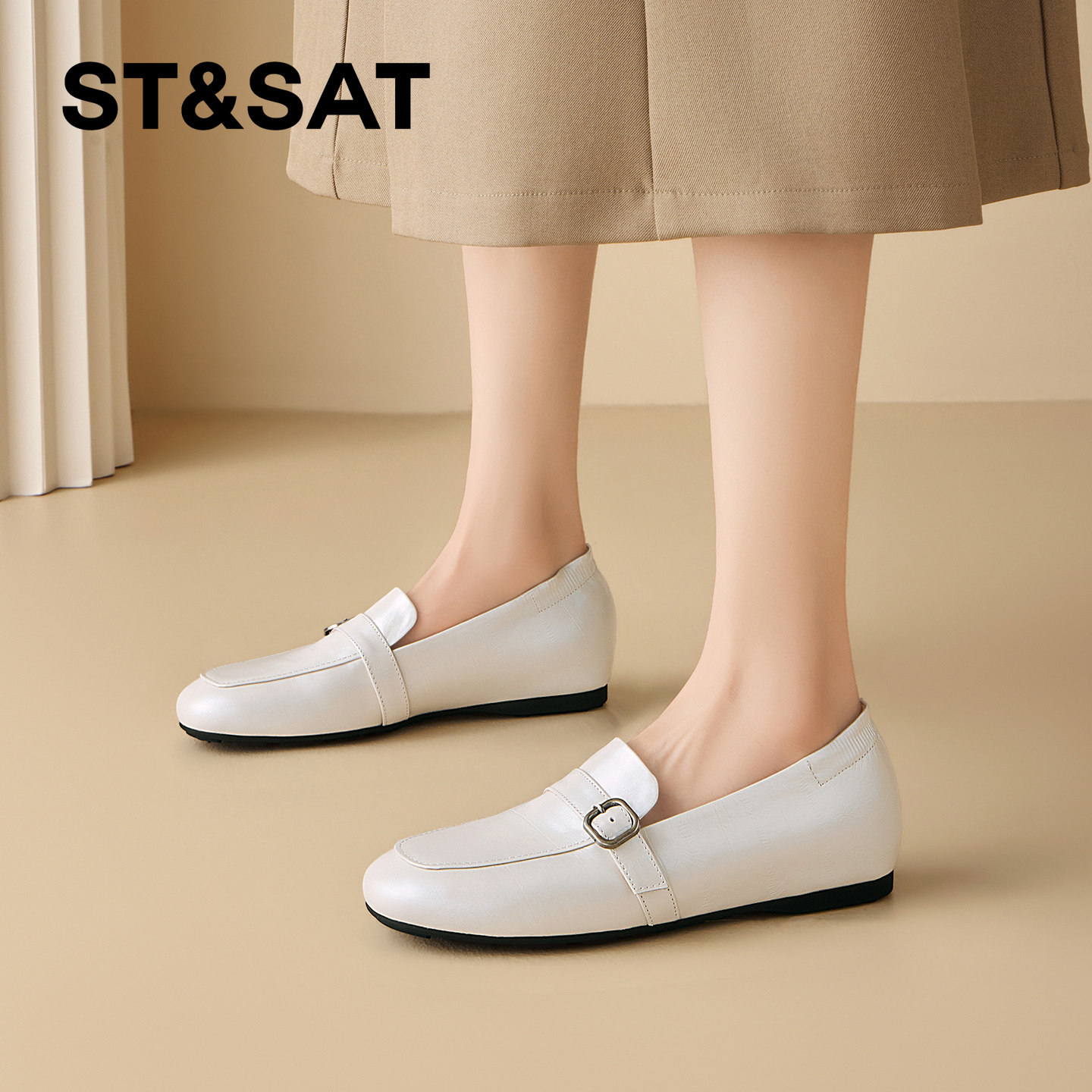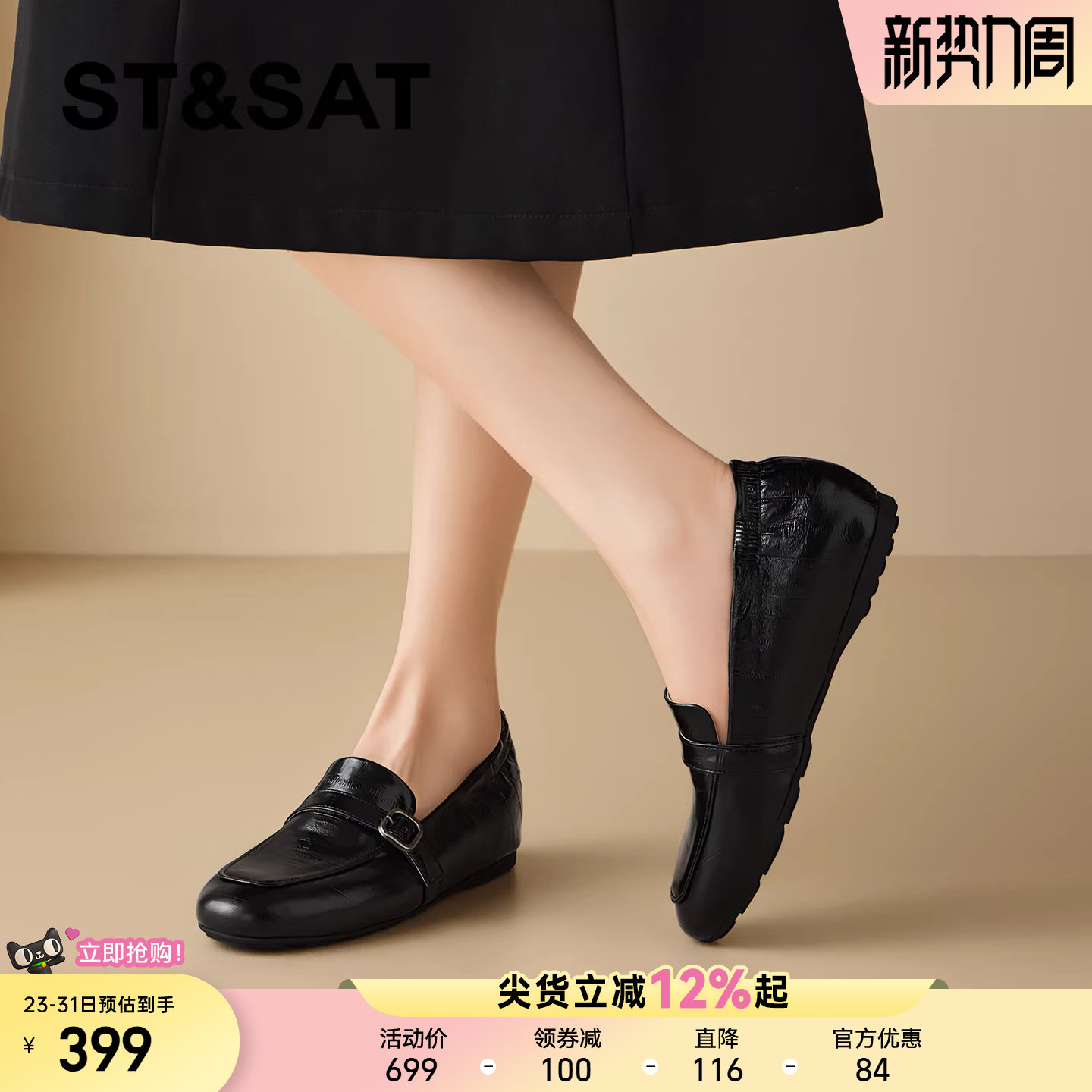 星期六真皮牛皮乐福鞋女鞋2025新款一脚蹬软底软面厚底英伦小皮鞋