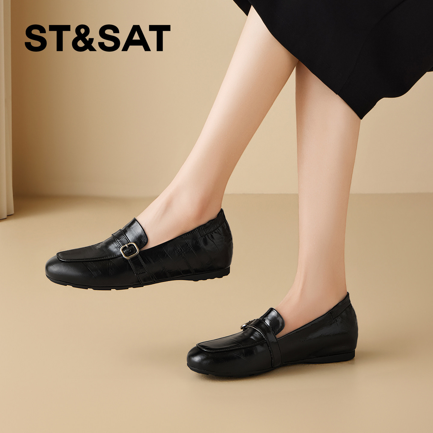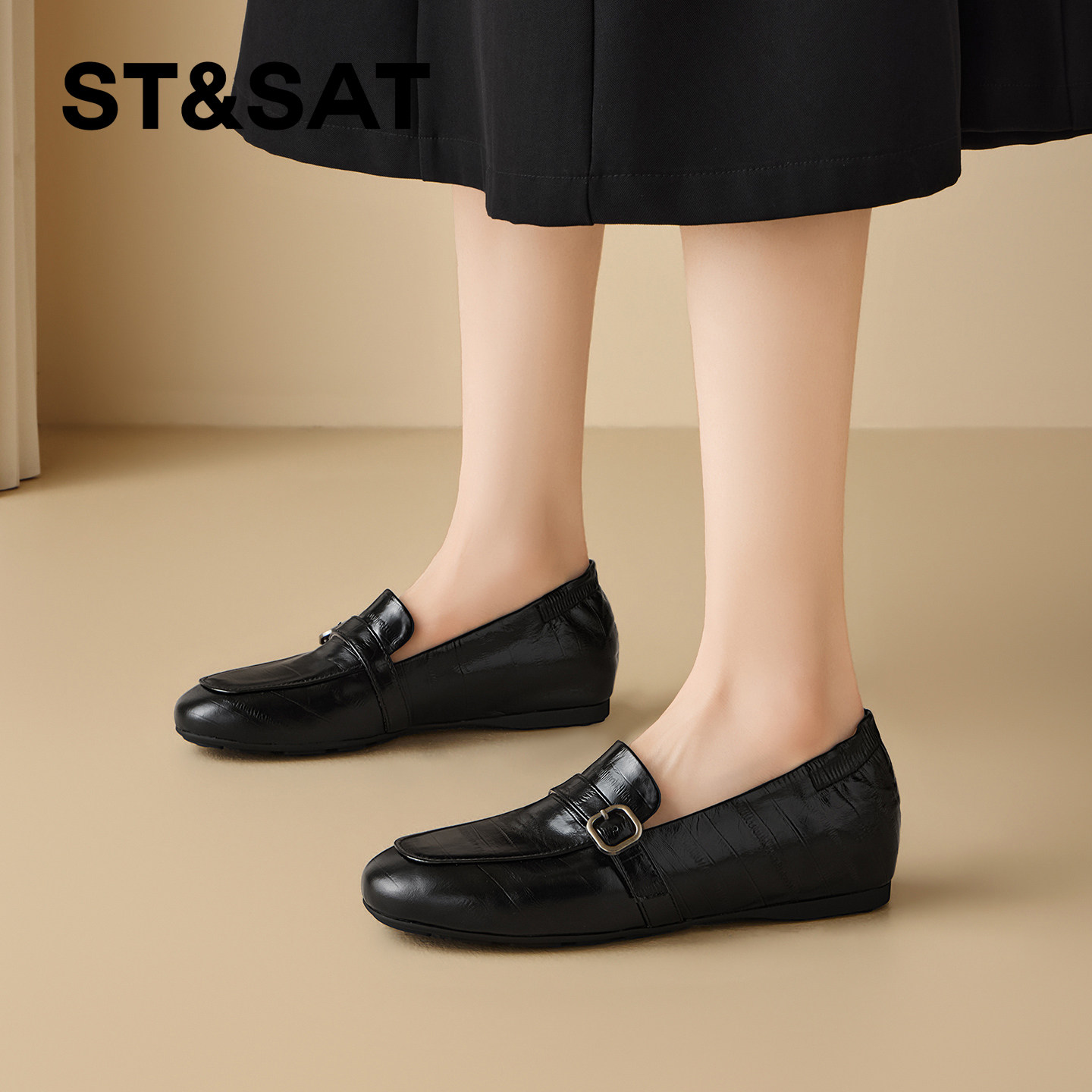 星期六真皮英伦风小皮鞋女2026春季新款圆头深口内增高单鞋乐福鞋