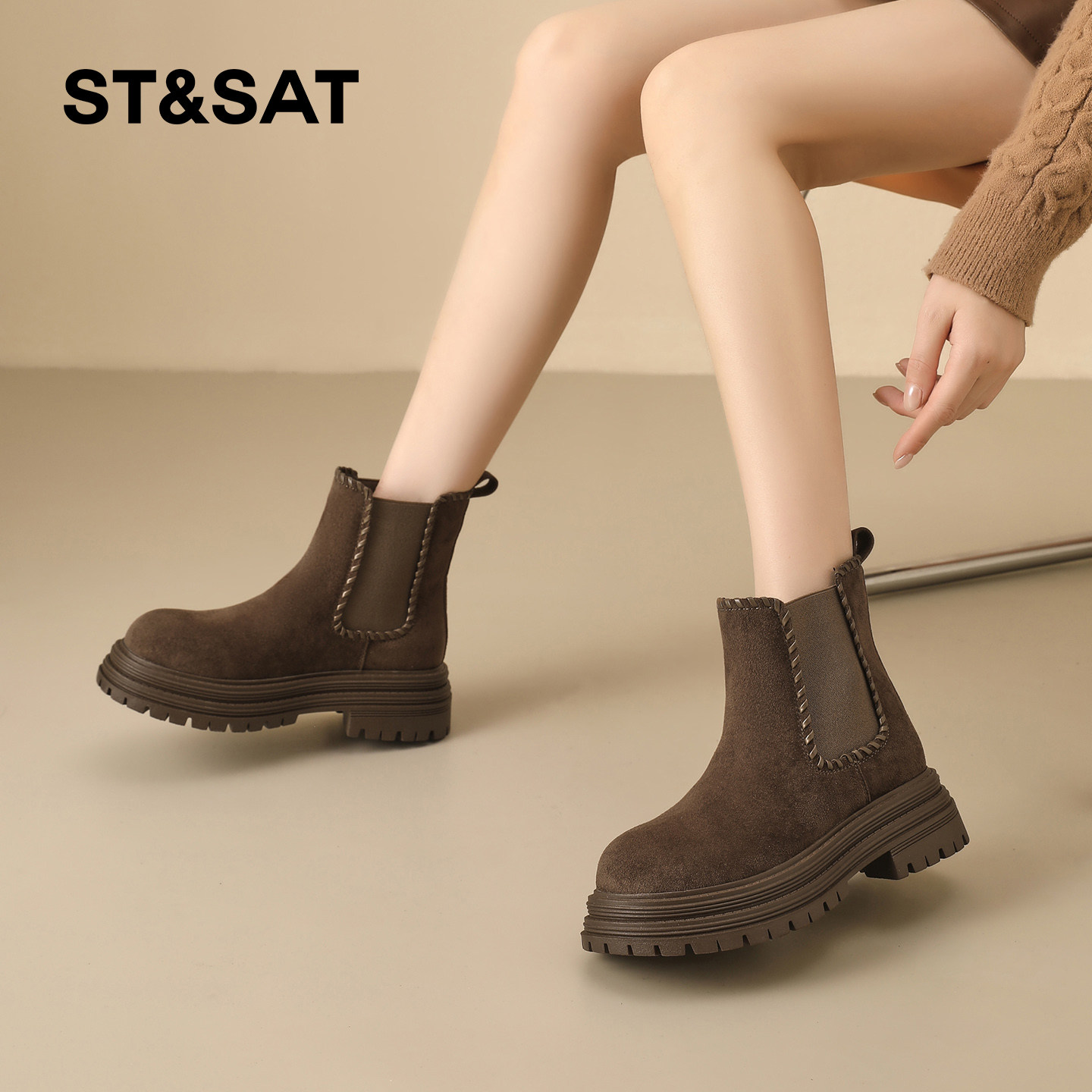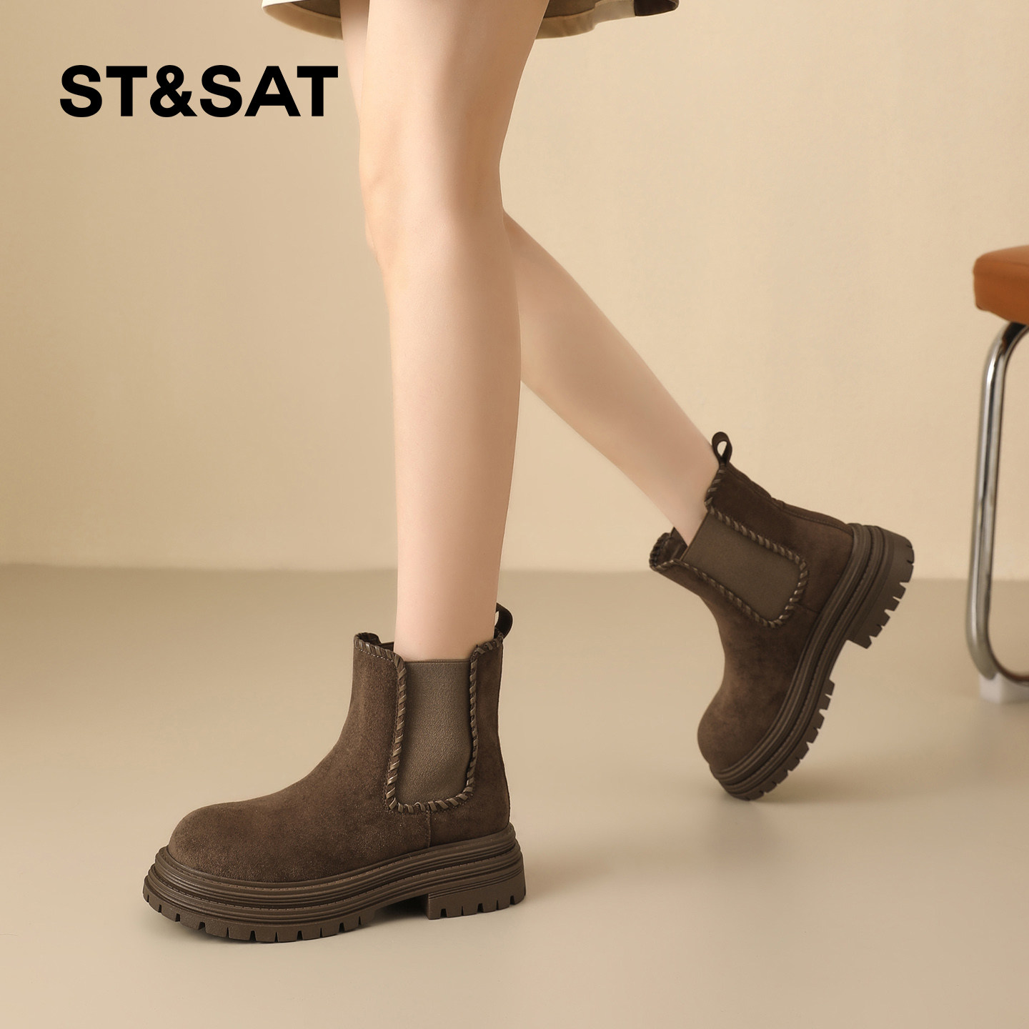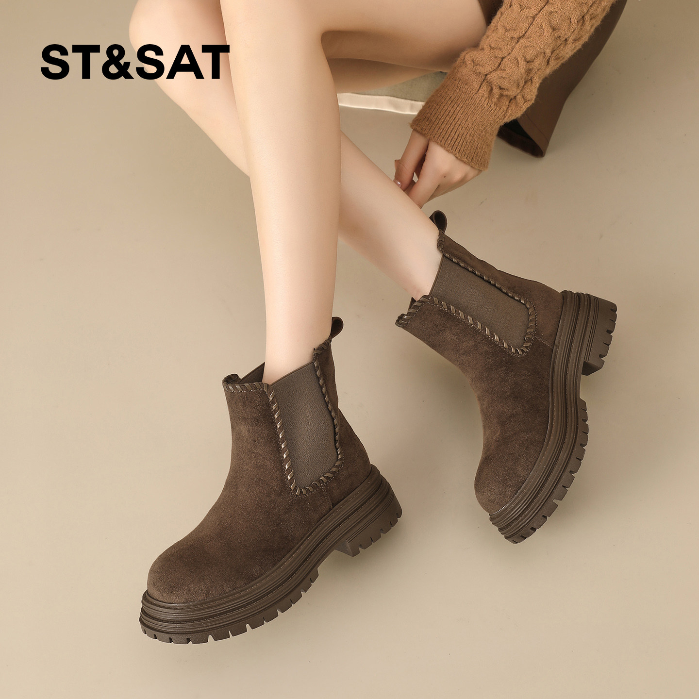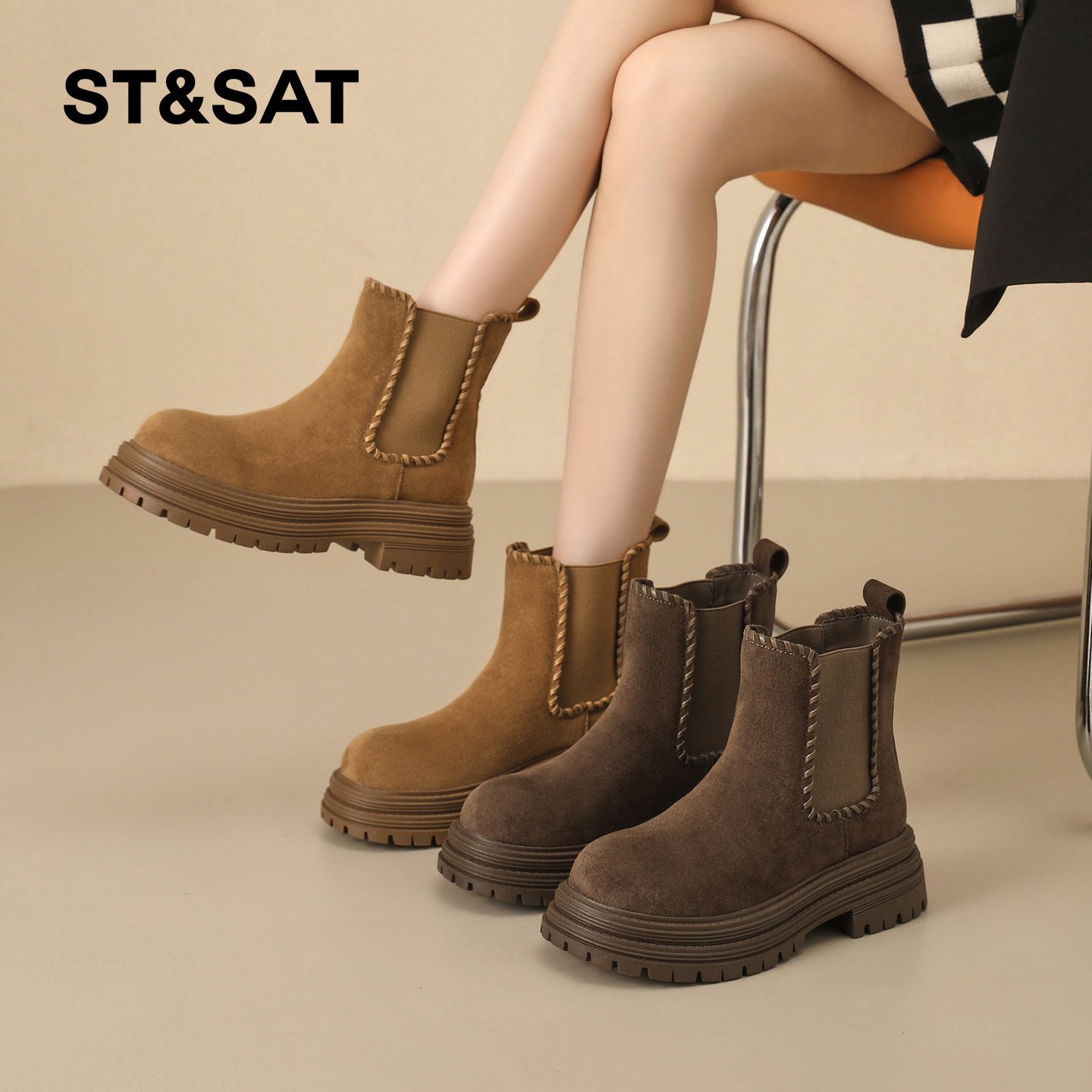 星期六马丁靴女2025冬季新款女靴女款爆款鞋子加绒靴子短靴烟筒靴