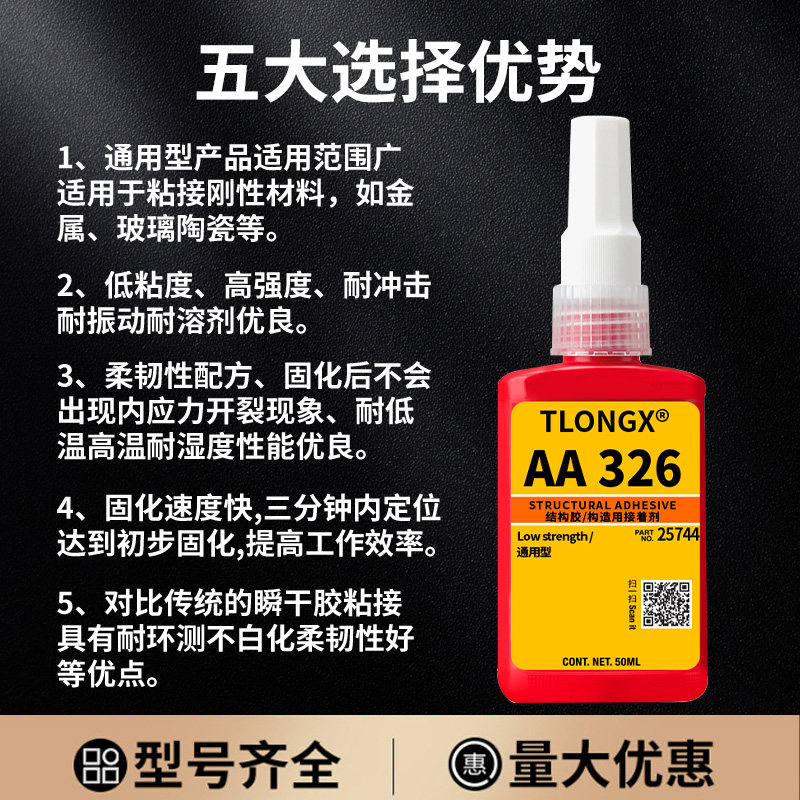 326胶水丙烯酸结构粘磁铁金属玻璃粘接磁钢专用胶耐高温电机马达喇叭汽车内后视镜座胶水
