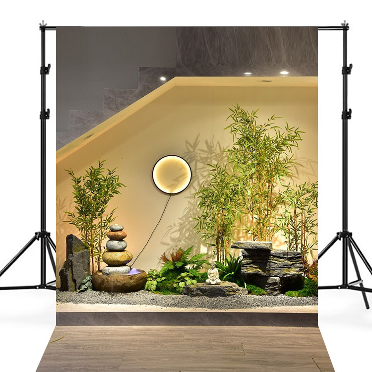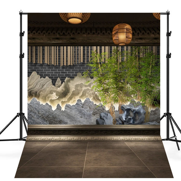 茶室3D背景墙布养生直播间立体背景布网红室内中医新中式直播背景